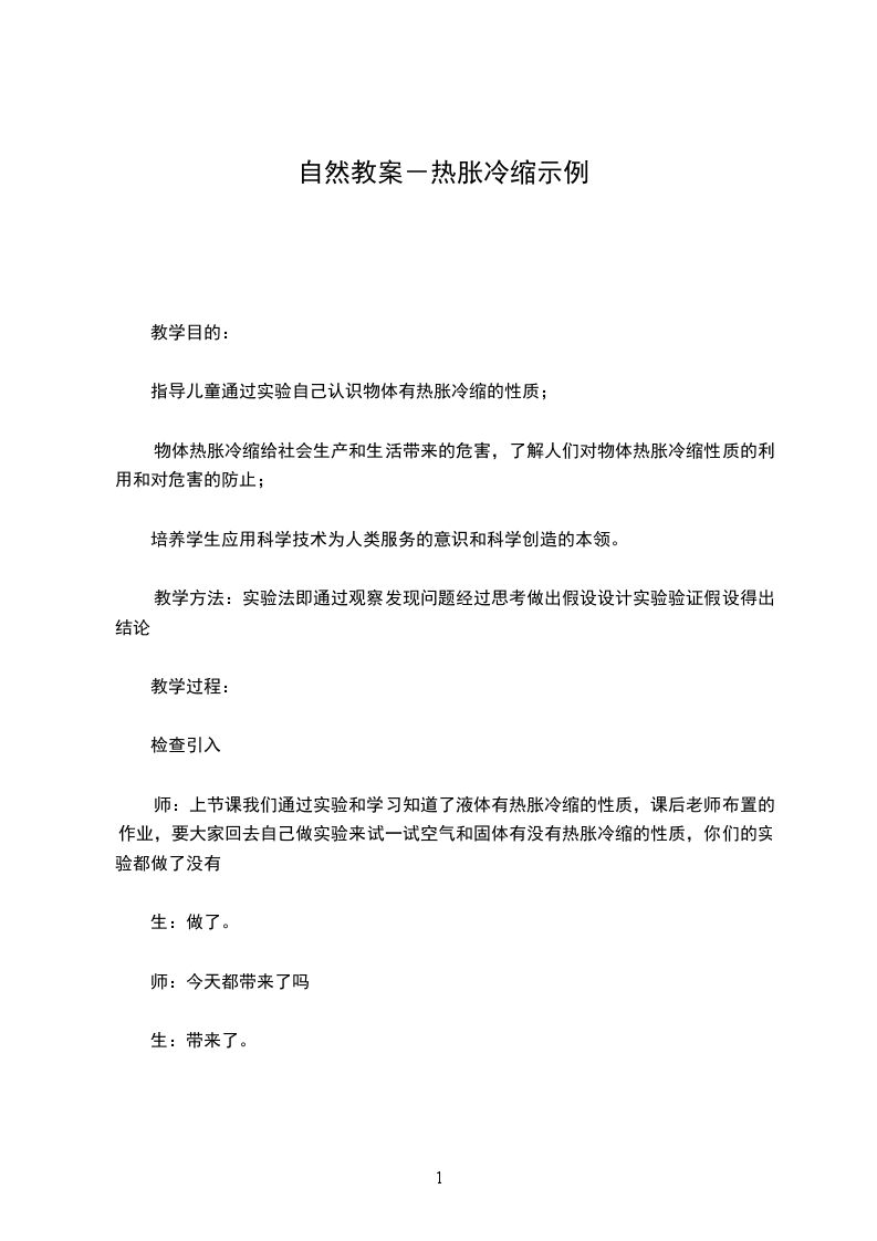 师:上节课我们通过实验和学习知道了液体有热胀冷缩的性质,课后老师布置的作业,要大家回去自己做实验来试一试空气和固体有没有热胀冷缩的性质,你们的实验都做了没有