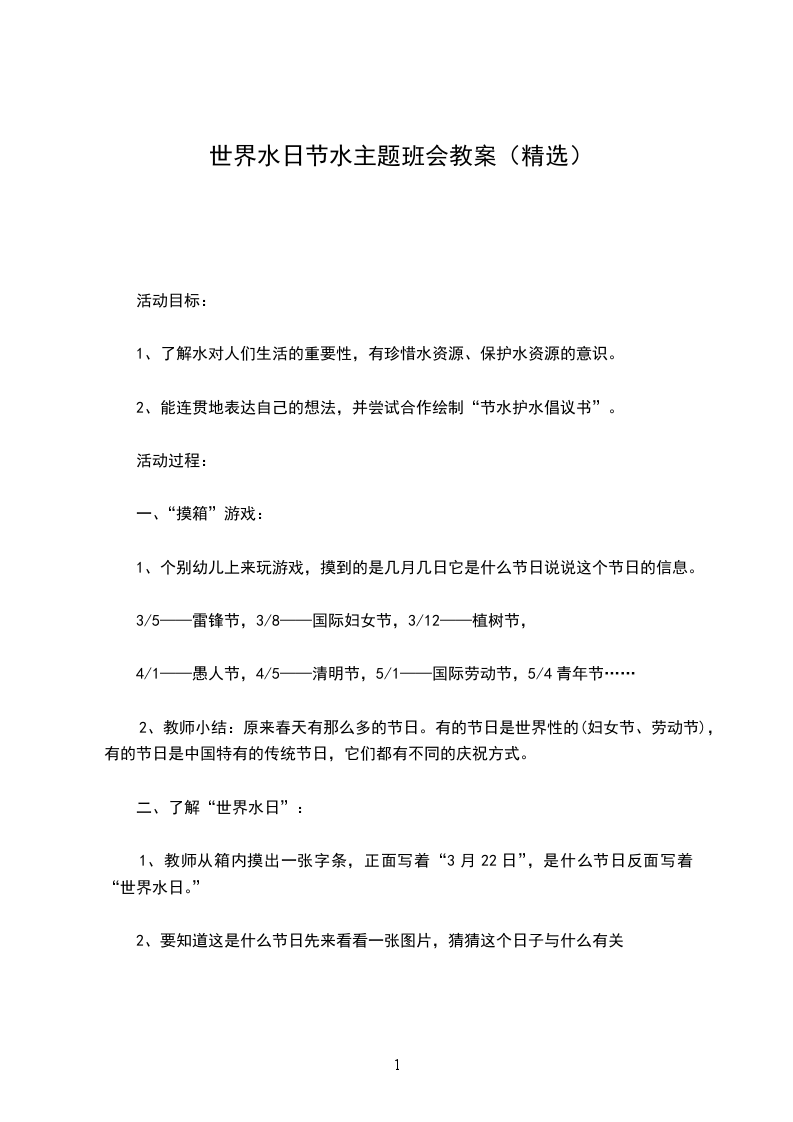 3、什么是“世界水日”(20_____年联合国大会决议:每年的3月22日为世界水日)为什么全世界人们都要过这个节日(幼儿发表自己的想法)