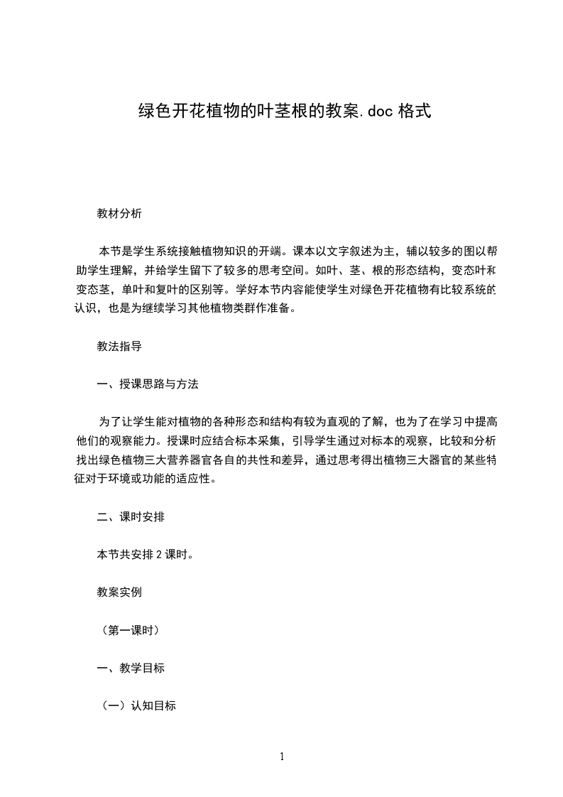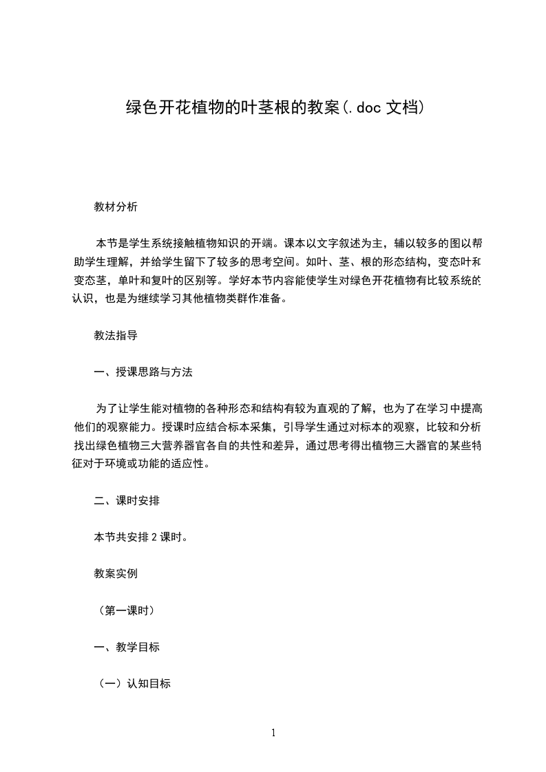 本节是学生系统接触植物知识的开端。课本以文字叙述为主,辅以较多的图以帮助学生理解,并给学生留下了较多的思考空间。如叶、茎、根的形态结构,变态叶和变态茎,单叶和复叶的区别等。学好本节内容能使学生对绿色开花植物有比较系统的认识,也是为继续学习其他植物类群作准备。