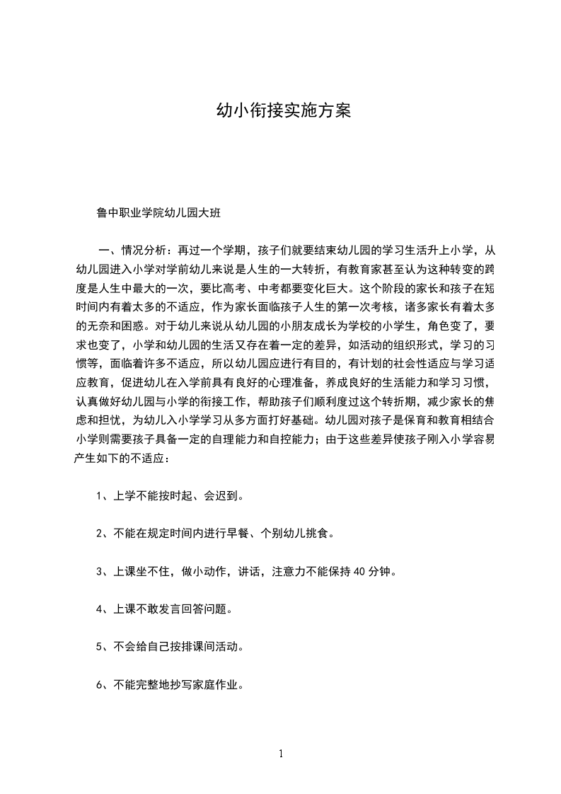 2、幼小衔接中,小学的协调工作往往被忽视。幼儿进入小学后,生活条件和教育条件都发生新的变化,必定有一个适应的过程,由于小学对于协调工作重视不够,新入学的儿童有着或多或少的学习压力、交往压力,甚至难以适应小学的学习节奏和方式,进而出现抗拒心理。