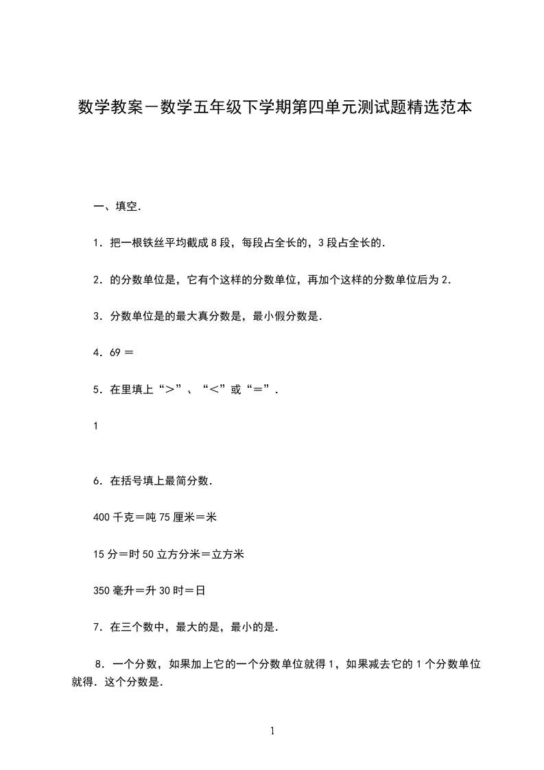 1.表示把单位“1”平均分成份,取这样的份.