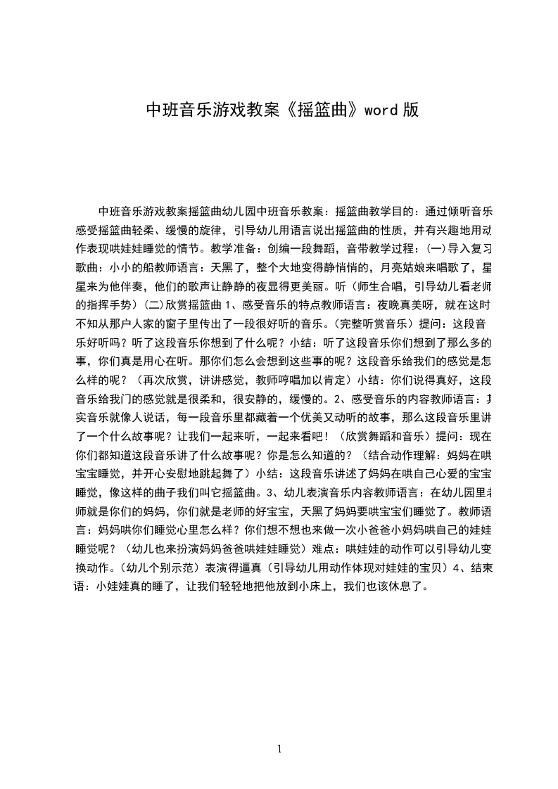 音乐教案-小学音乐《摇篮曲》(.doc文档)