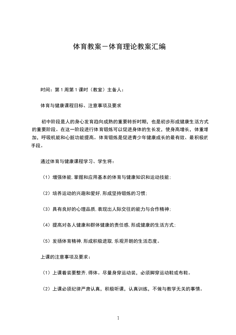 体育与健康课程目标、注意事项及要求