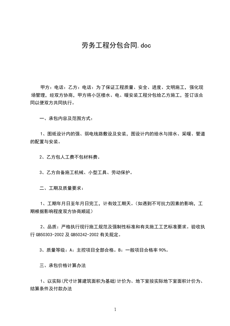 二、劳务方式: