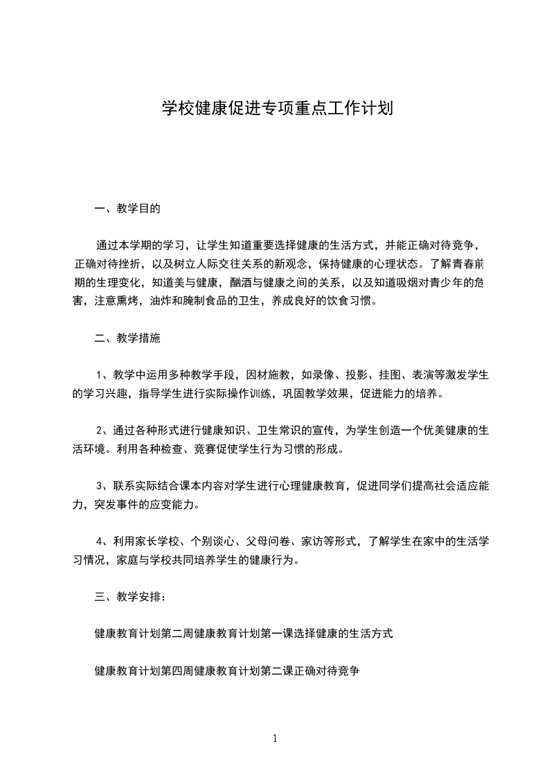 健康教育计划第四周健康教育计划第二课正确对待竞争