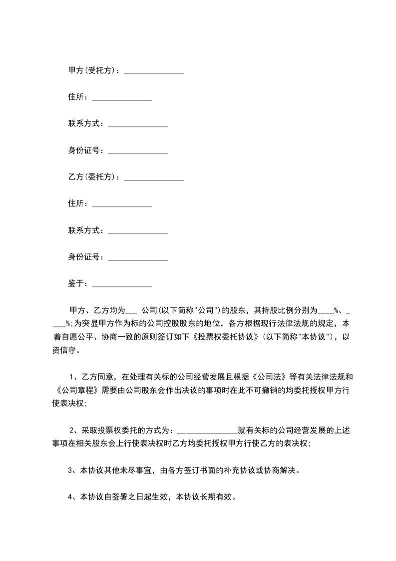 第一条:甲方委托乙方代理操作甲方在________开设的资金账户,资金账号为________。交易密码甲乙双方共享,甲方可以查询,但不能操作。