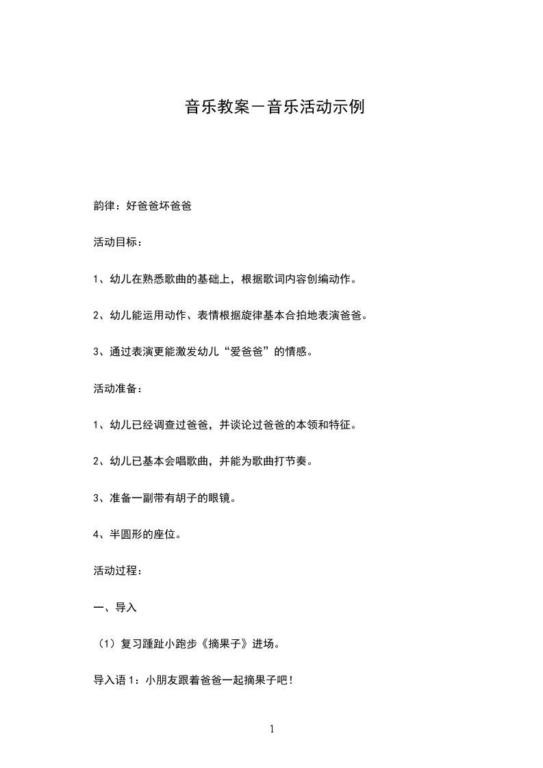 2、幼儿能运用动作、表情根据旋律基本合拍地表演爸爸。