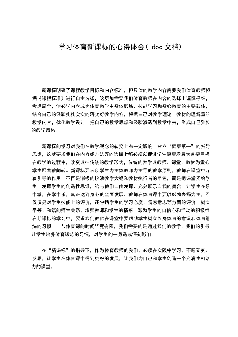 在“新课标”的指导下,作为体育教师的我们,必须在实践中学习,不断研究、反思,让学生在体育课中得到更好的发展,让我们为自己和学生创造一个充满生机活力的课堂。