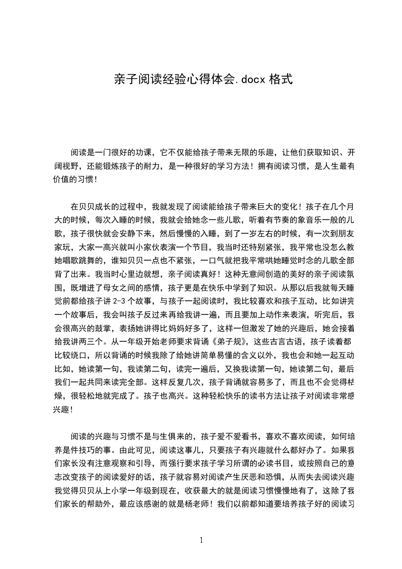 亲子阅读心得体会二: