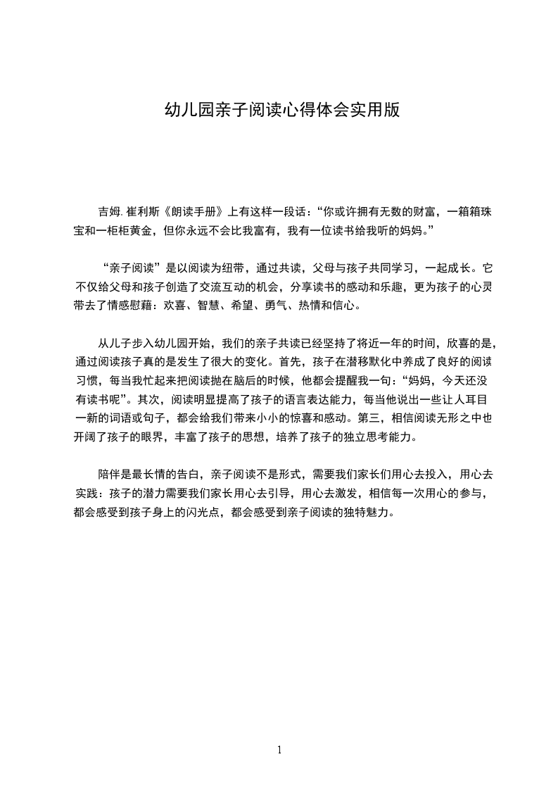 亲子阅读心得体会一:
