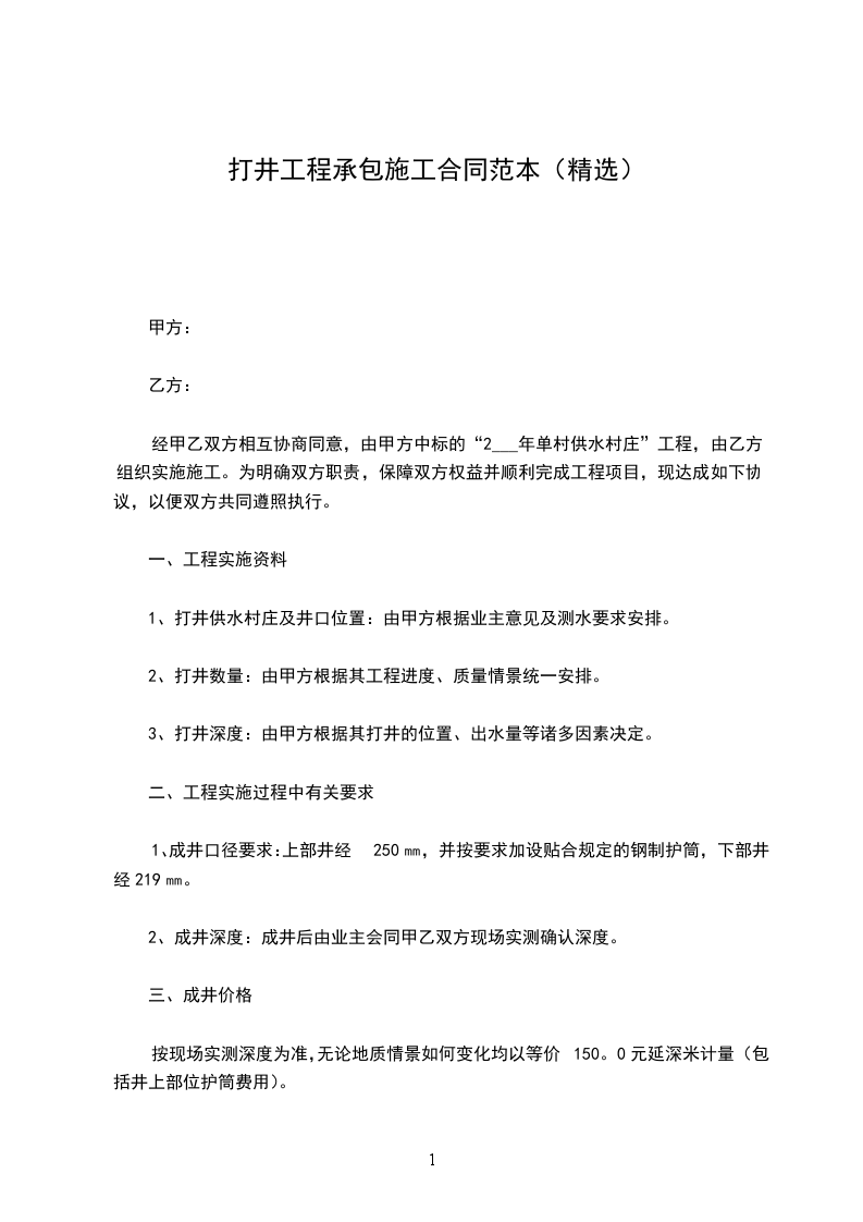 2、打井数量:由甲方根据其工程进度、质量情景统一安排。