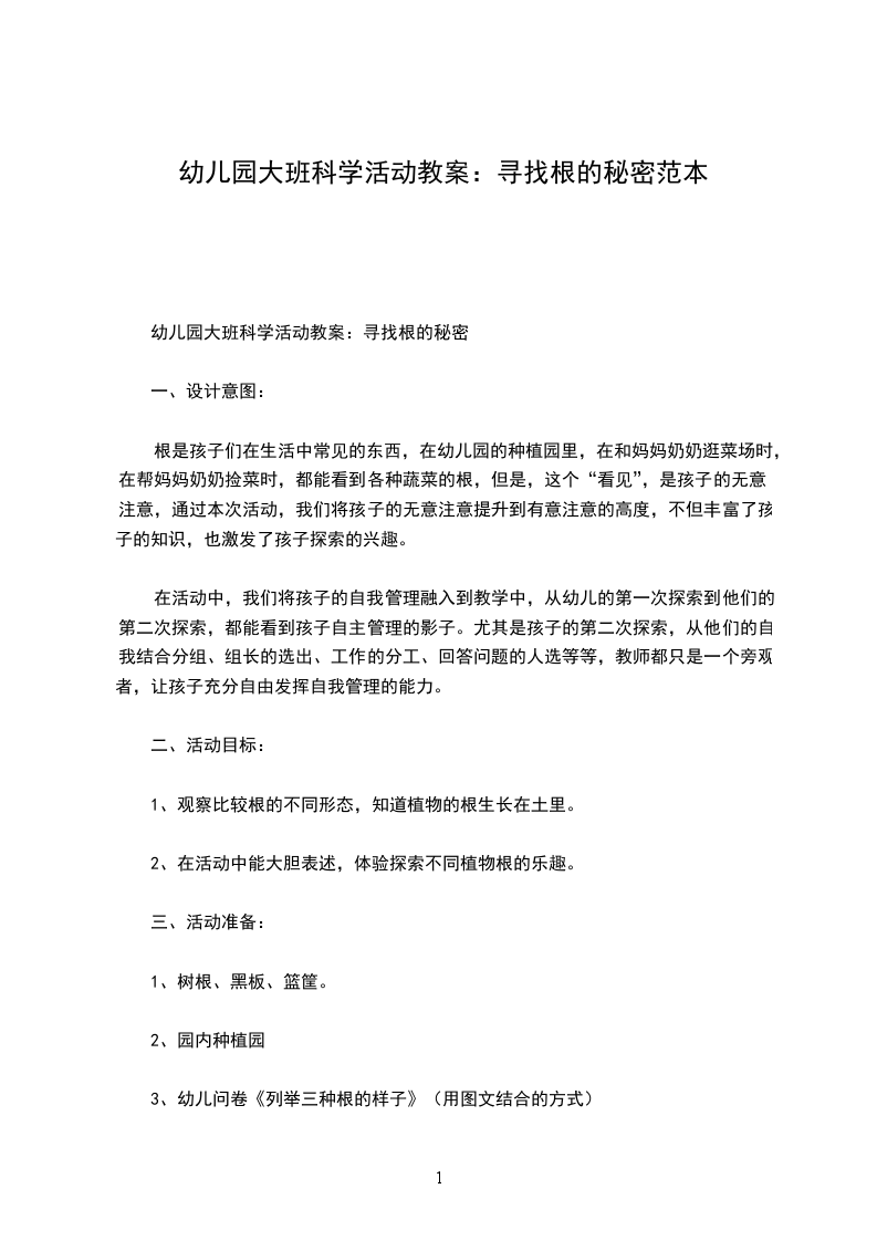 幼儿园大班科学活动教案:寻找根的秘密