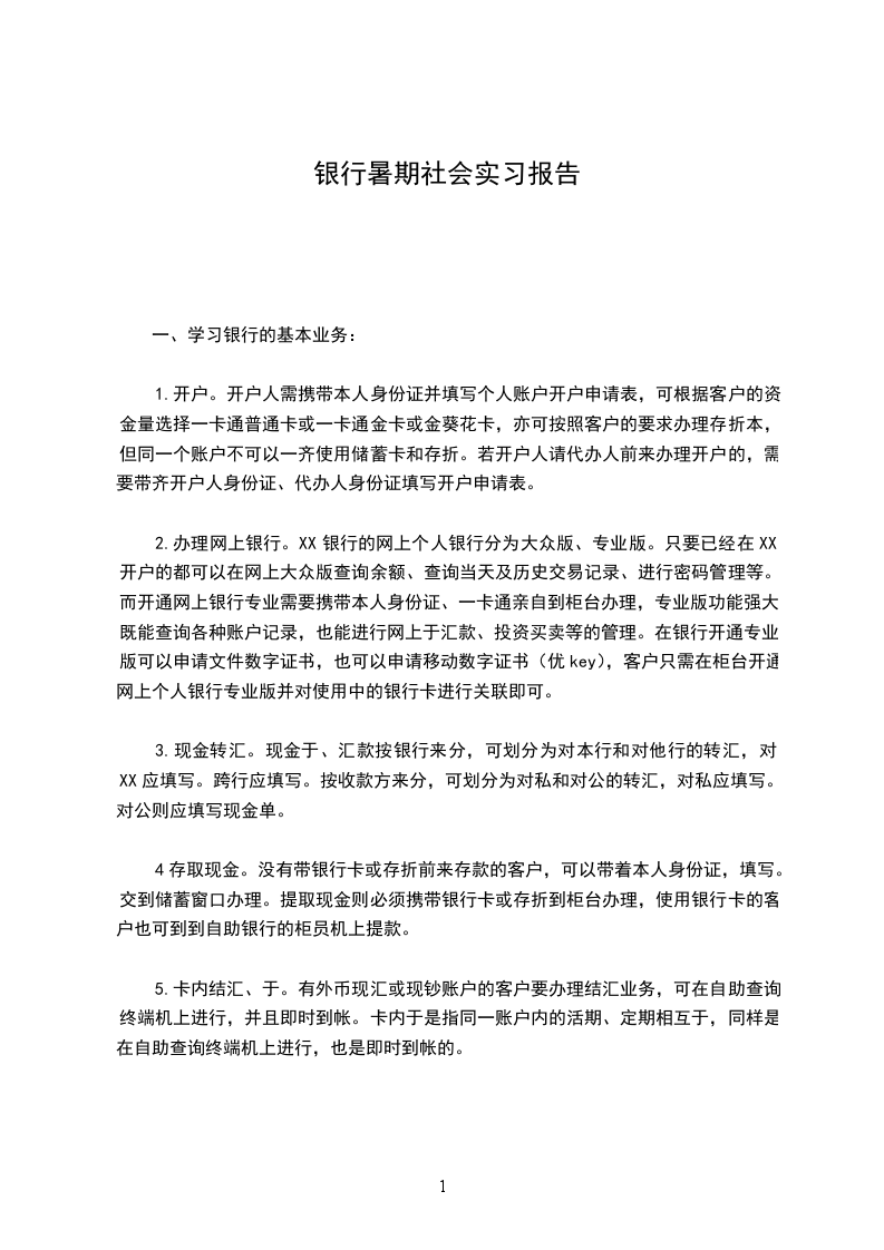 社会实践是大学同学接触社会,增加社会阅历和社会经验的良好契机,学校高度重视学生社会实践工作。暑假期间,为了提高自我素质,响应学校号召,本人以个人为单位,进行了预就业社会实践,在__银行开展了为期14天的岗位见习活动,在单位老师的帮助下,我熟悉了金融机构的主要经济业务活动,如综合业务处理,个人外汇业务等,以拓展视野,提高专业素质,增强社会适应能力,为下一步学习就业树立正确的观念和目标。