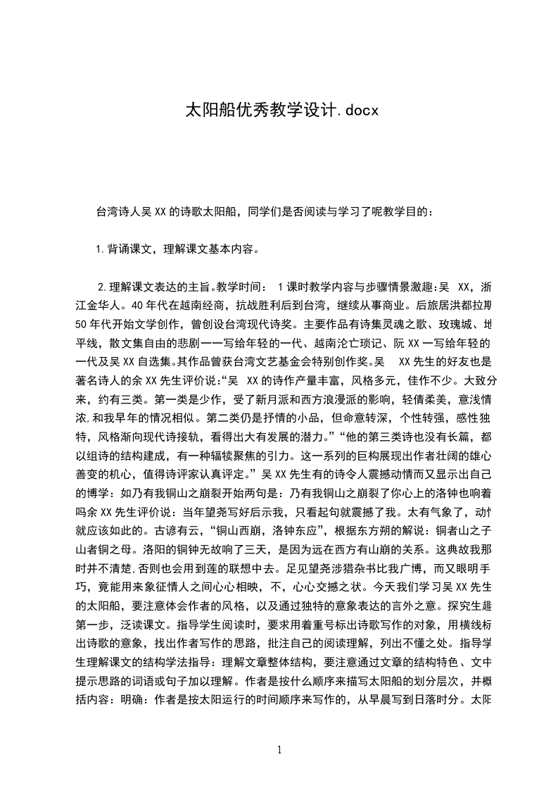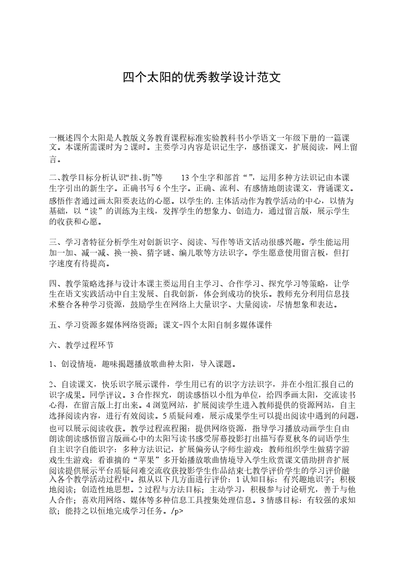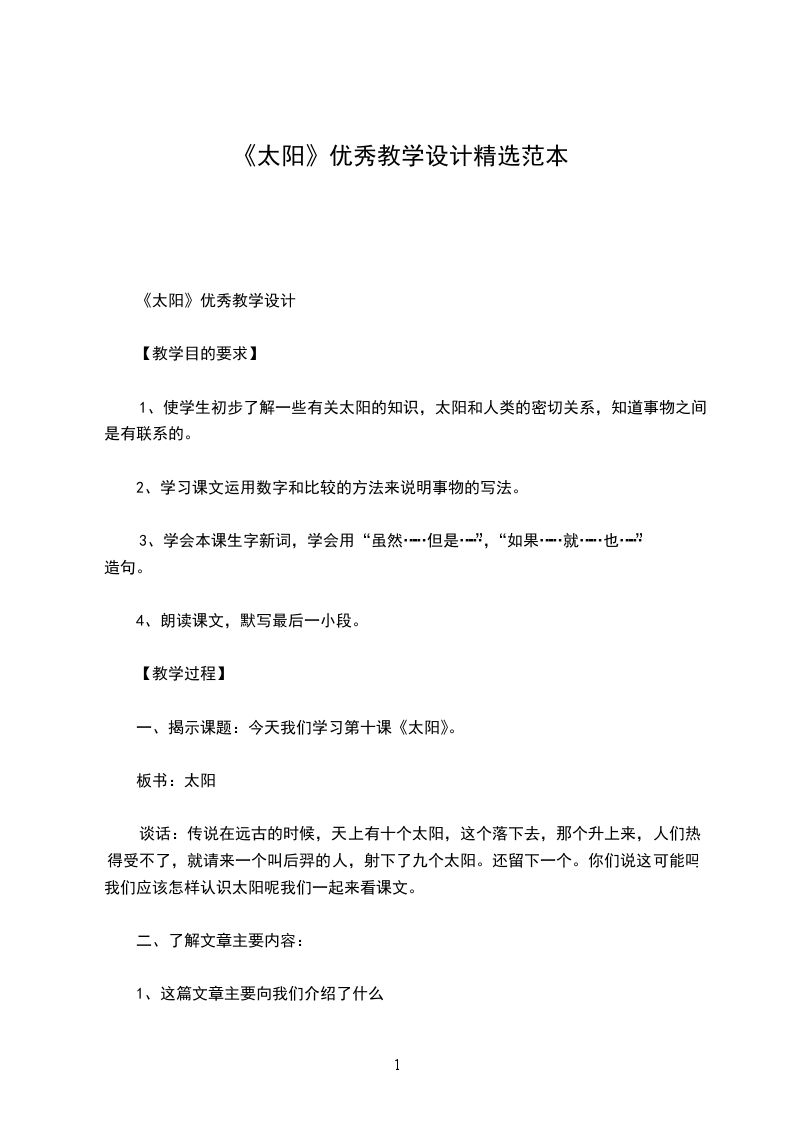 《太阳》优秀教学设计