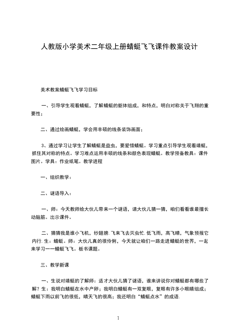 2、学会用各种线条、色彩描绘蜻蜓的身体和翅膀。