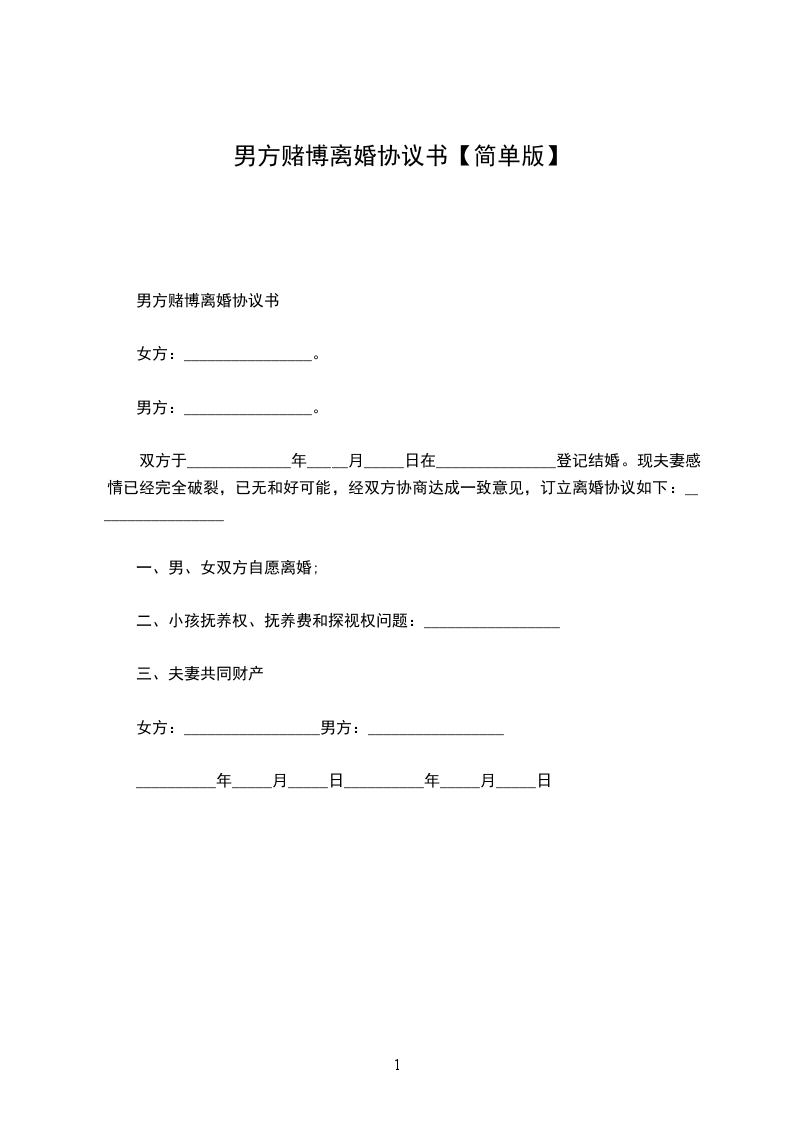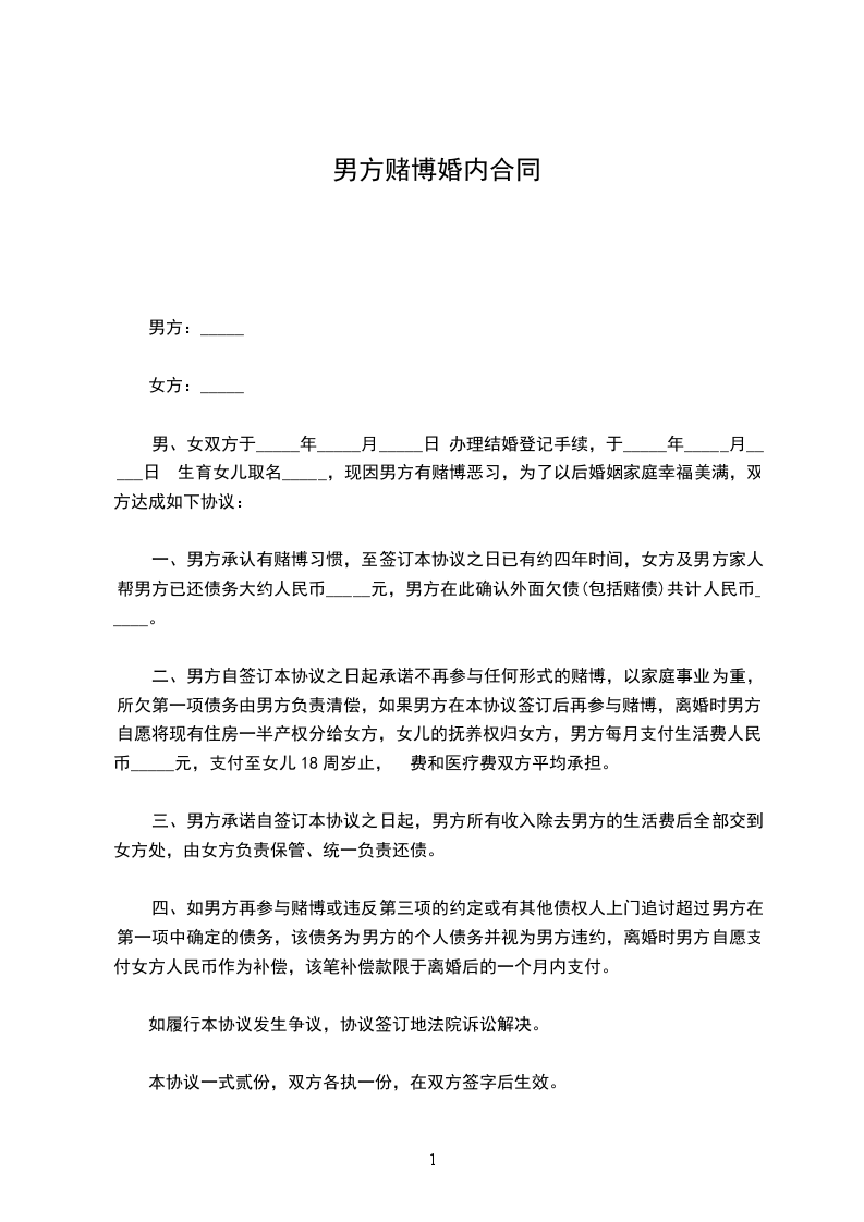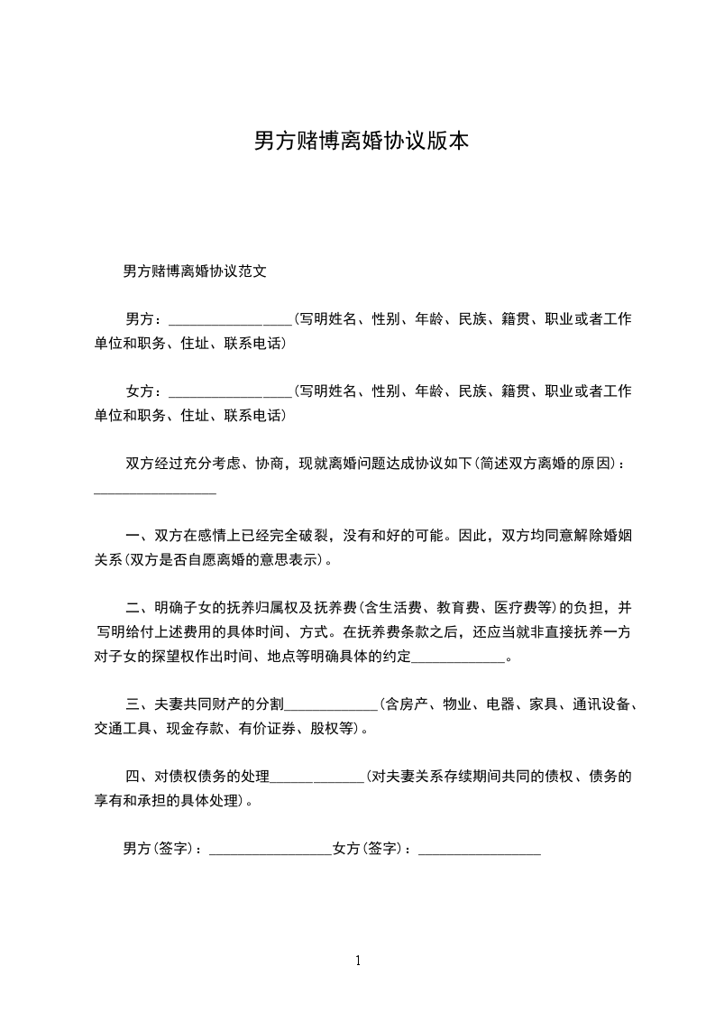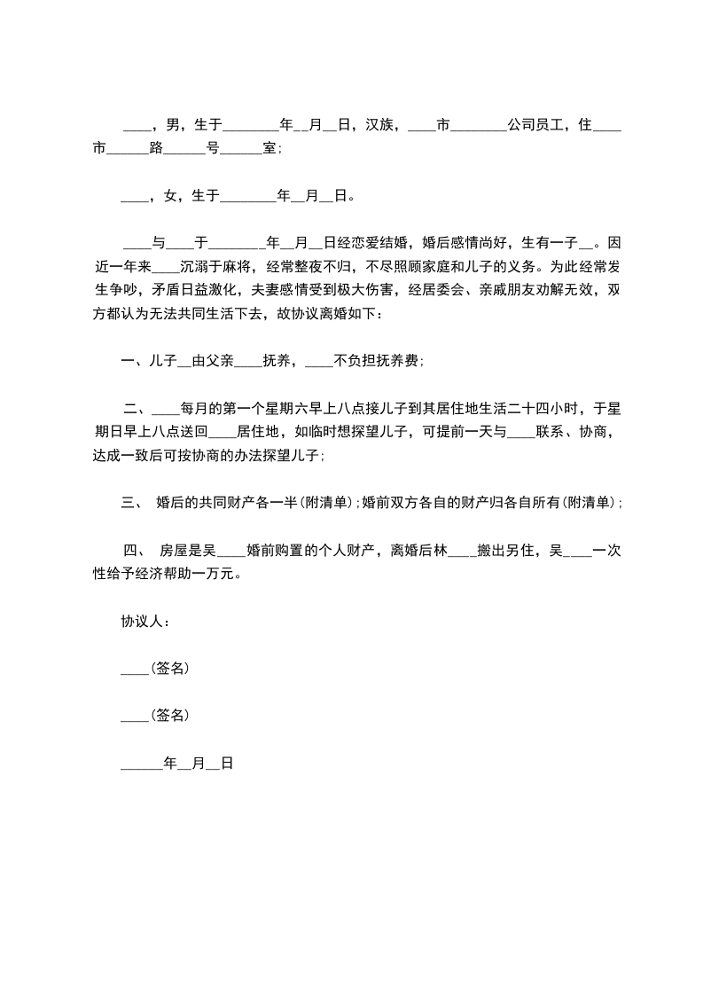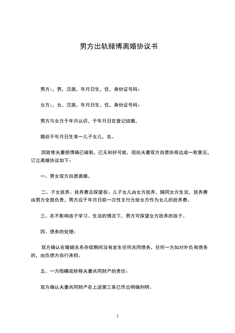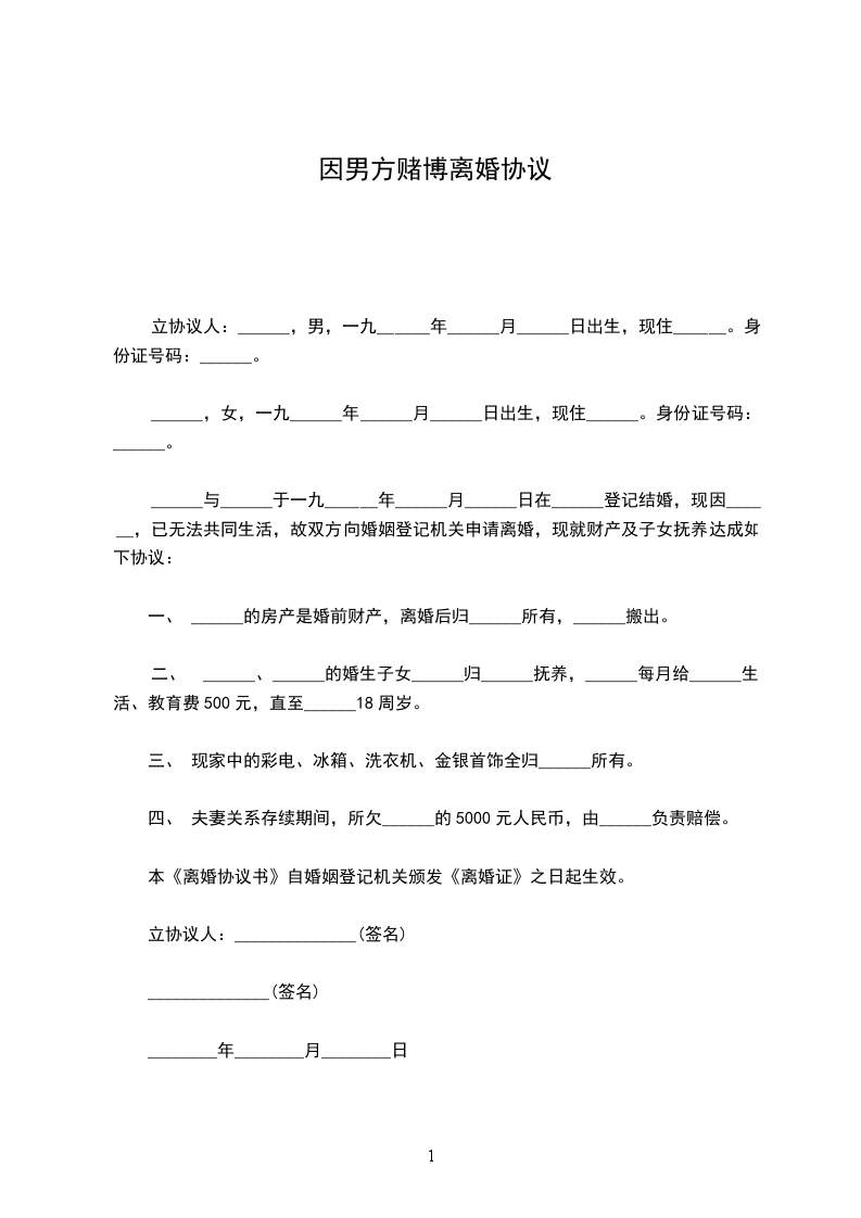 立协议人:______,男,一九______年______月______日出生,现住______。身份证号码:______。