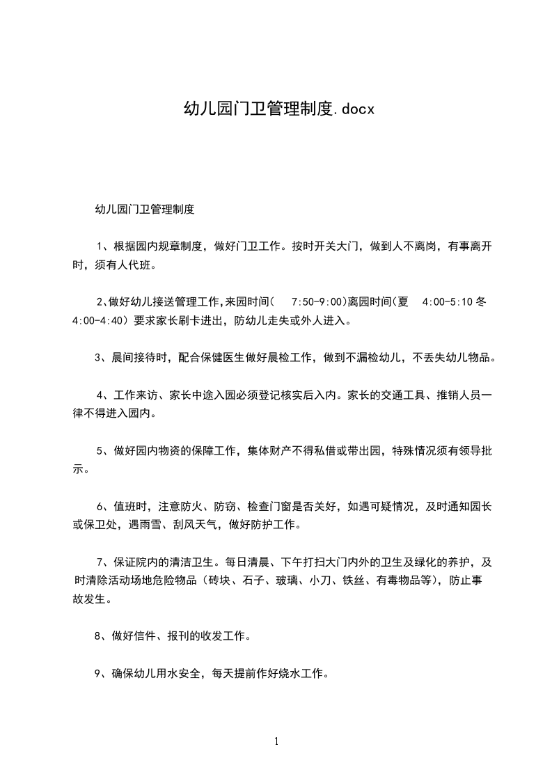 幼儿园门卫(保安)管理制度