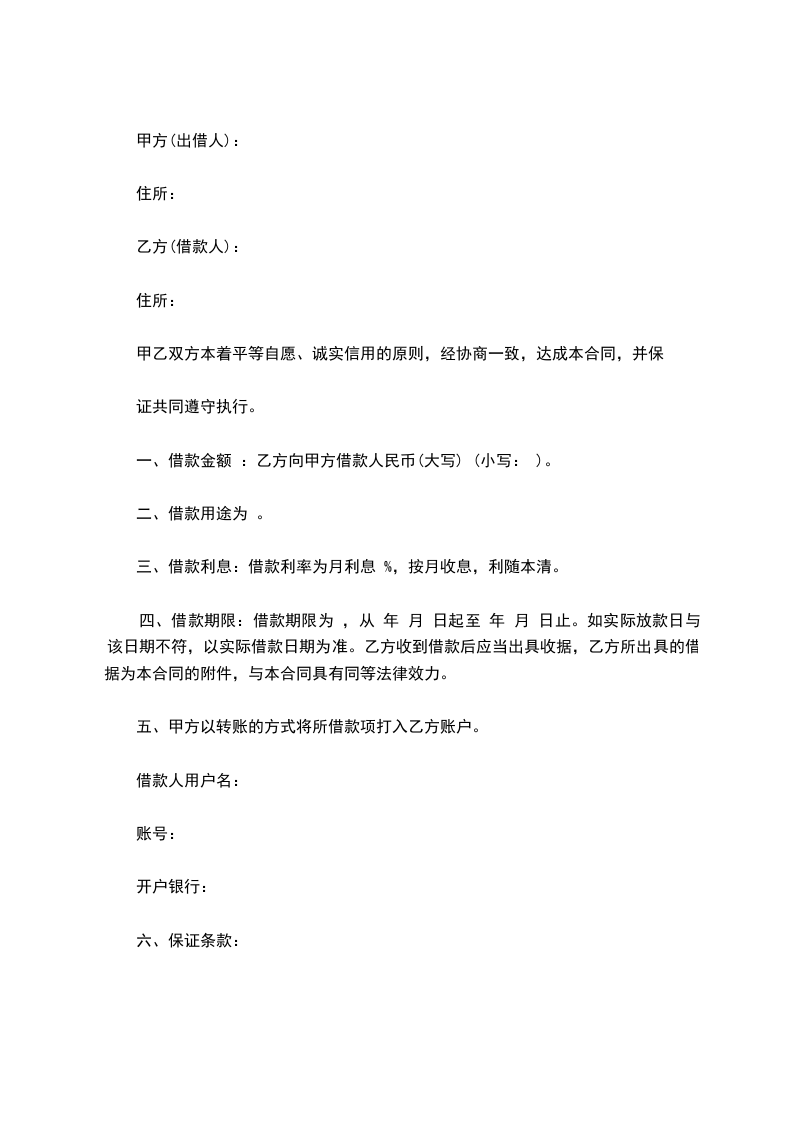 第一条、借款金额和用途借款方向贷款方申请借款人民币(大写)__________万元。