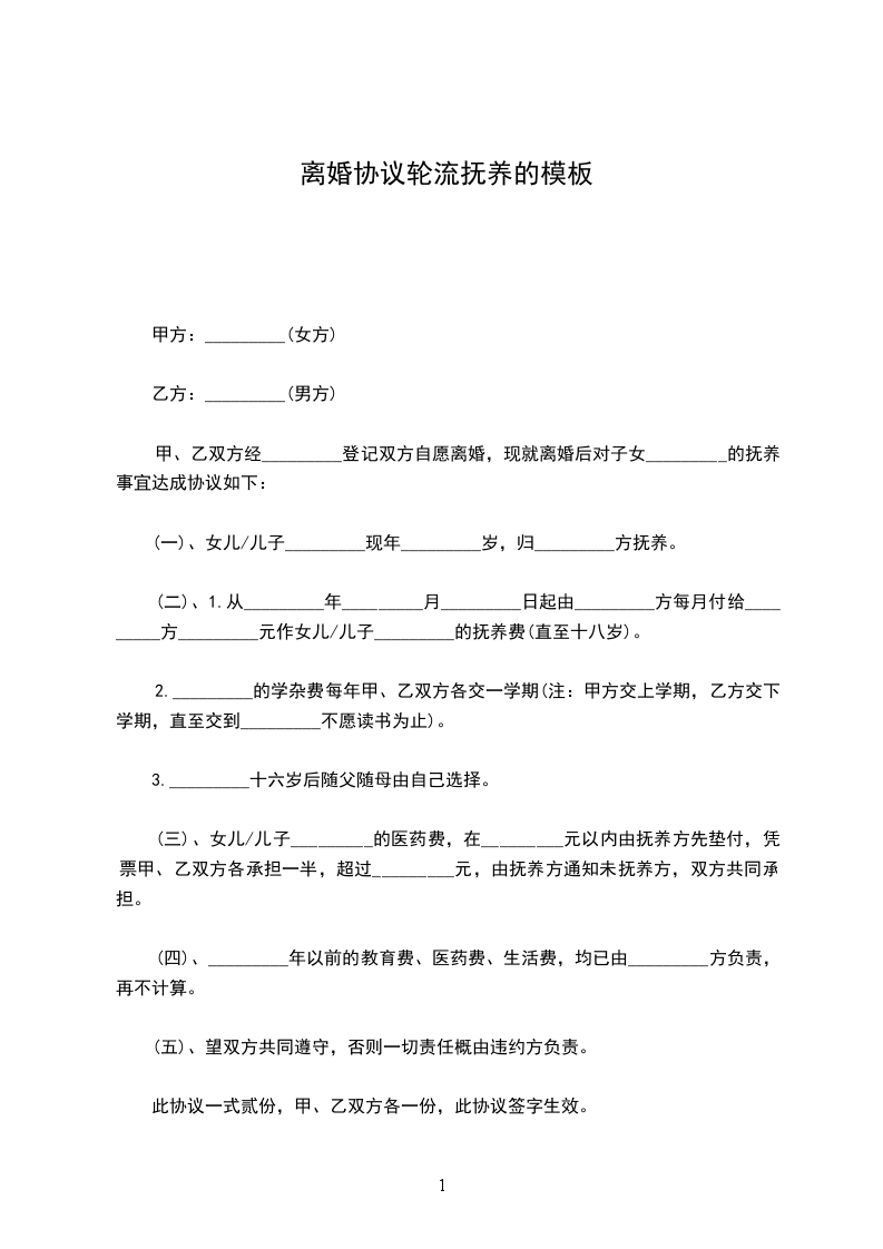 (一)、女儿/儿子_________现年_________岁,归_________方抚养。