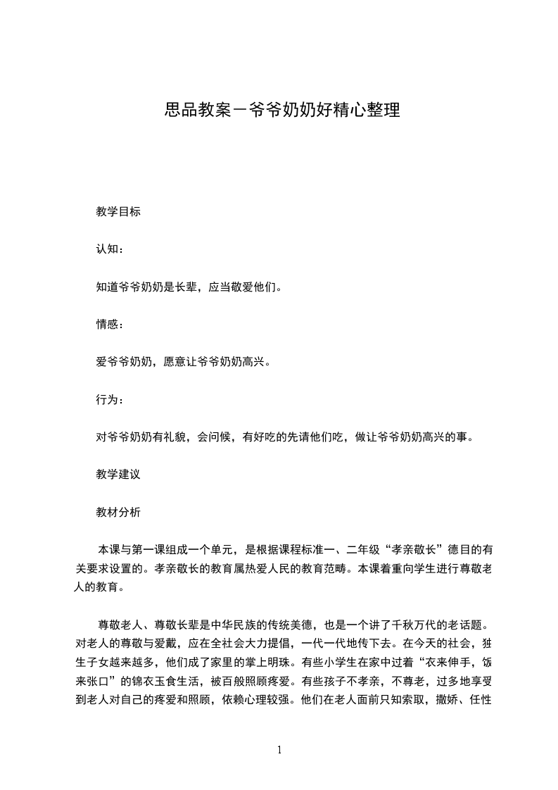 3、尊敬老人的社会意义本课没有涉及,但教学中可以适当渗透。例如,老人为国家、为社会、为家庭都做出过贡献,为养育子女和晚辈付出过许多心血,等等。可以结合具体事例启发学生体会老人一生的辛苦,激发他们尊敬老人的情感。