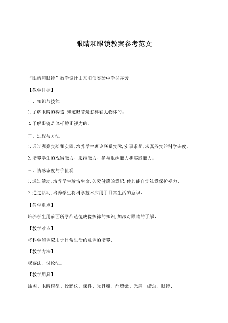 “眼睛和眼镜”教学设计山东阳信实验中学吴卉芳