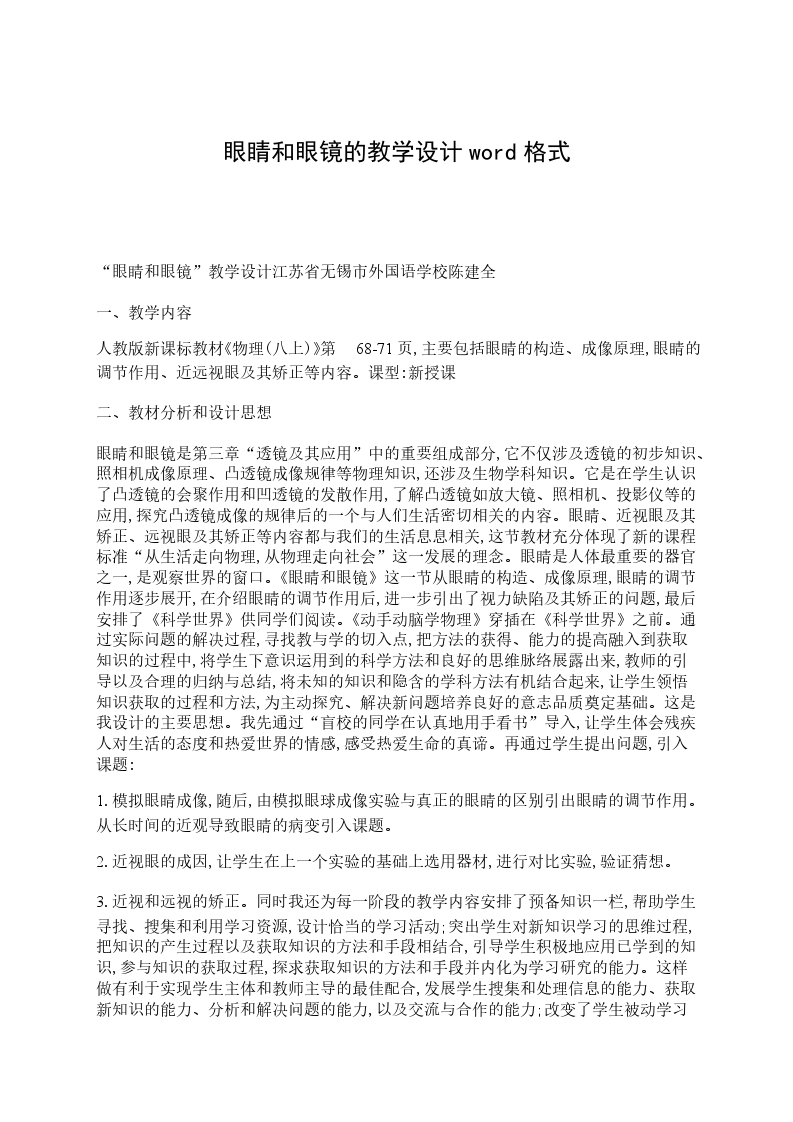 “眼睛和眼镜”教学设计江苏省无锡市外国语学校陈建全