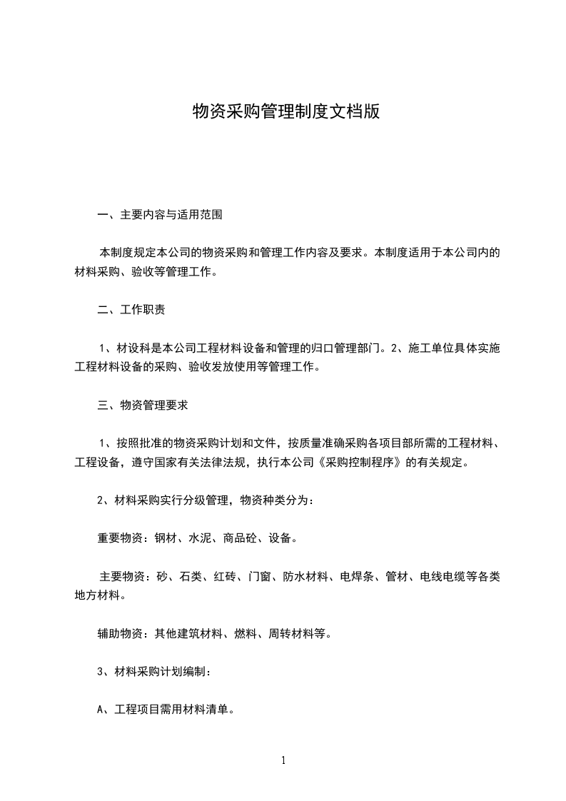 本制度规定本公司的物资采购和管理工作内容及要求。本制度适用于本公司内的材料采购、验收等管理工作。