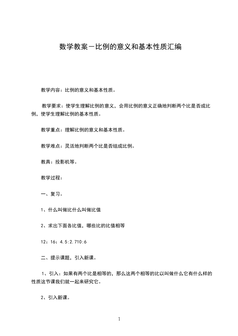 1、引入:如果有两个比是相等的,那么这两个相等的比以叫做什么它有什么样的性质这节课我们就一起来研究它。