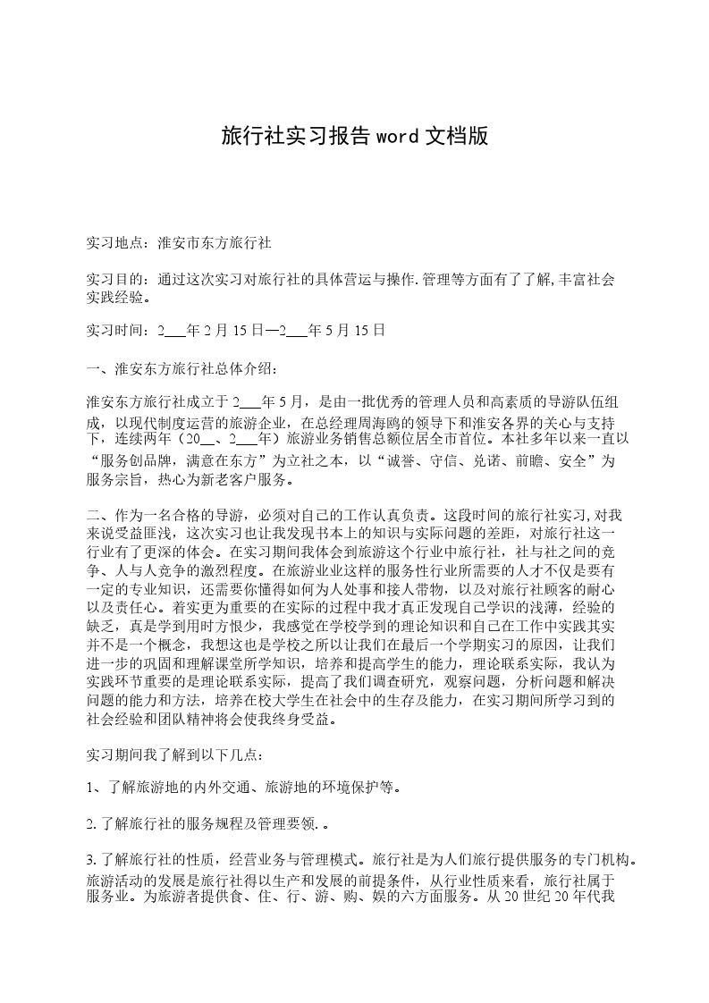 旅行社实习报告范文(二)