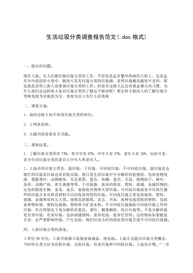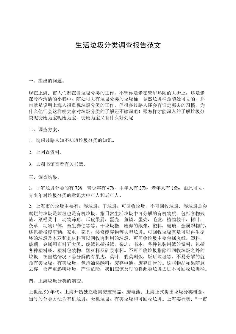 1,了解垃圾分类的有73% ,青少年有47% ,中年人有37% ,老年人有16% ,由此可见,青少年对垃圾分类的意识大于中年人和老年人。