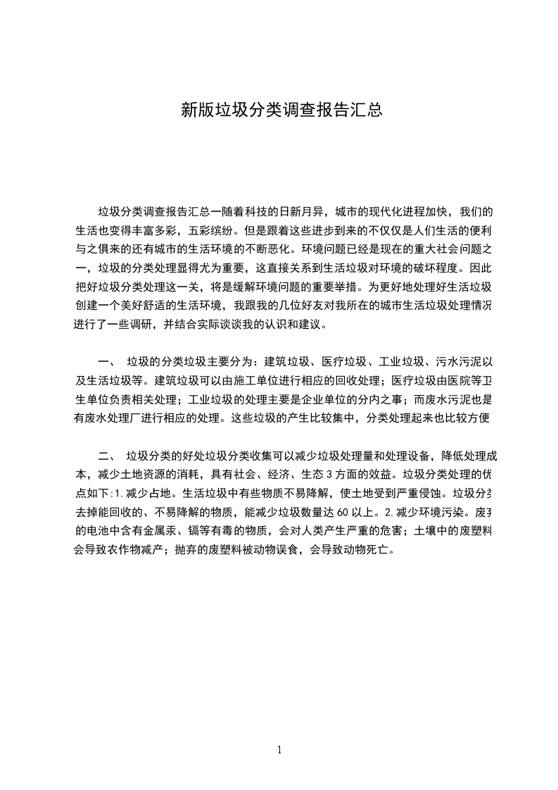 垃圾能变废为宝。有些垃圾是通过回收加工后直接利用。有些垃圾是回收,分类,压缩,变形,融化,制造出新的耐用品。垃圾能够变成新纸,新铅笔,新陶艺的艺术品等。垃圾变废为宝,能美化环境,对人类做出更大贡献,节约人类的材料,节约人类的能源。比如,用生料直接制作玻璃比旧玻璃融化的温度高的多。我坚信,垃圾分类在两年内一定会普及全国,甚至普及全球。让大家一起来学习垃圾分类,认识垃圾分类,实践垃圾分类,那我们的生存环境变得干净舒适,让我们的身体健康起来。既然垃圾是有价值的。还不如我们一起行动起来,做好垃圾分类,共同建造美好城市!