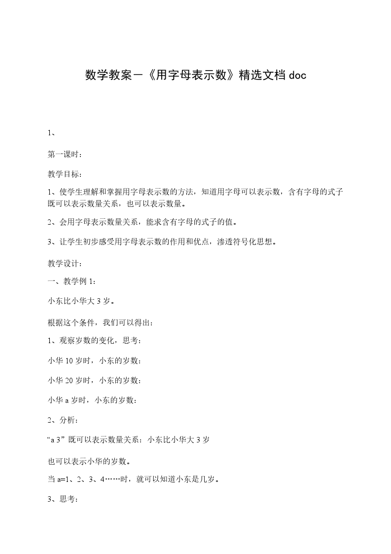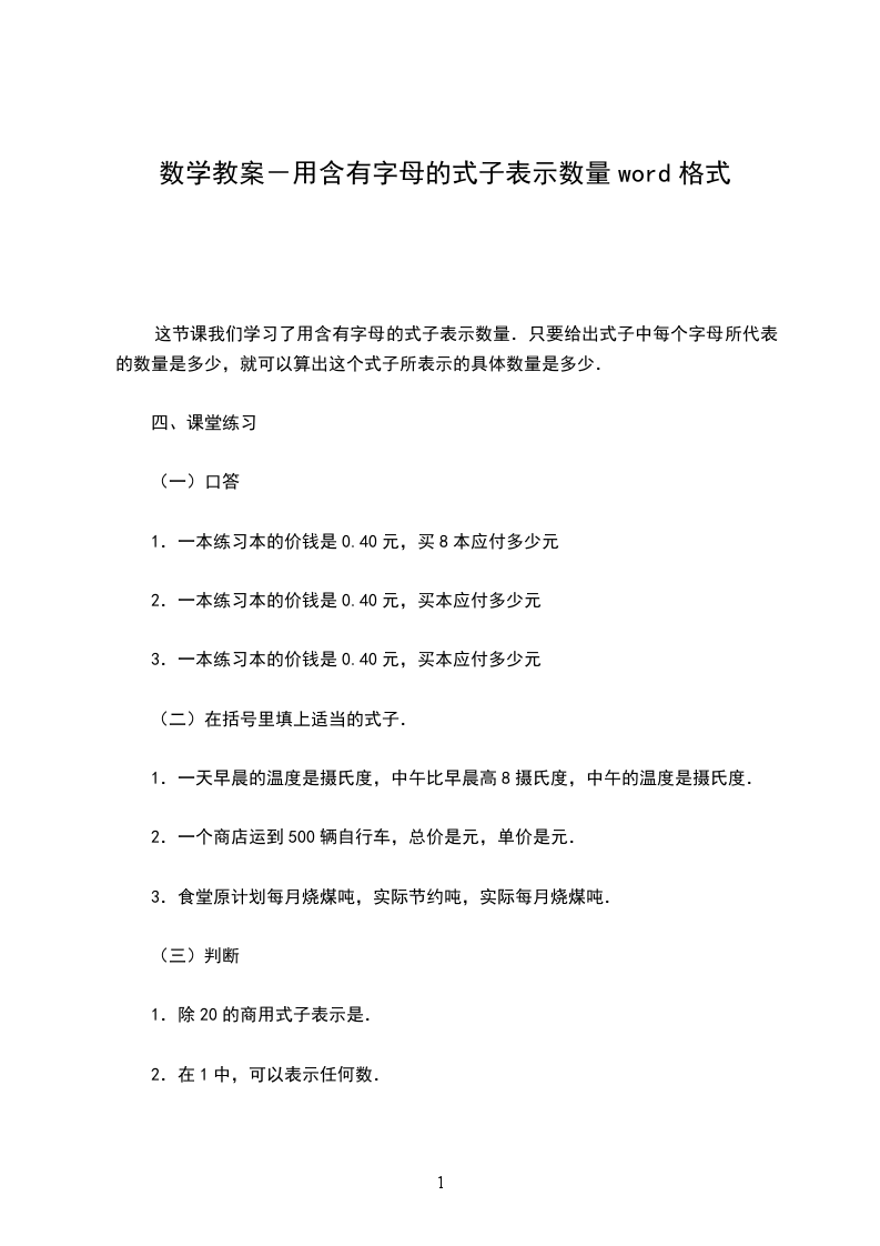 用字母表示数量关系