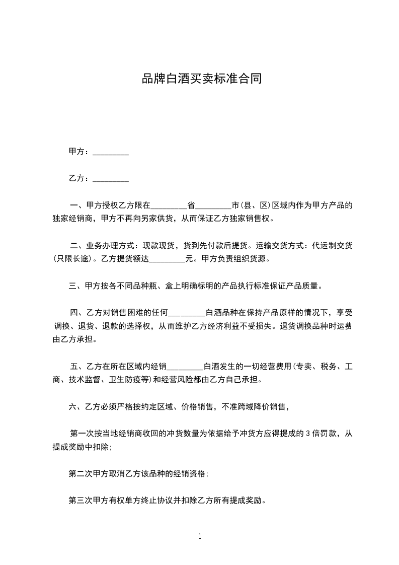 3.甲方保留统一调整产品价格的权力,调价提前_______________天通知乙方。