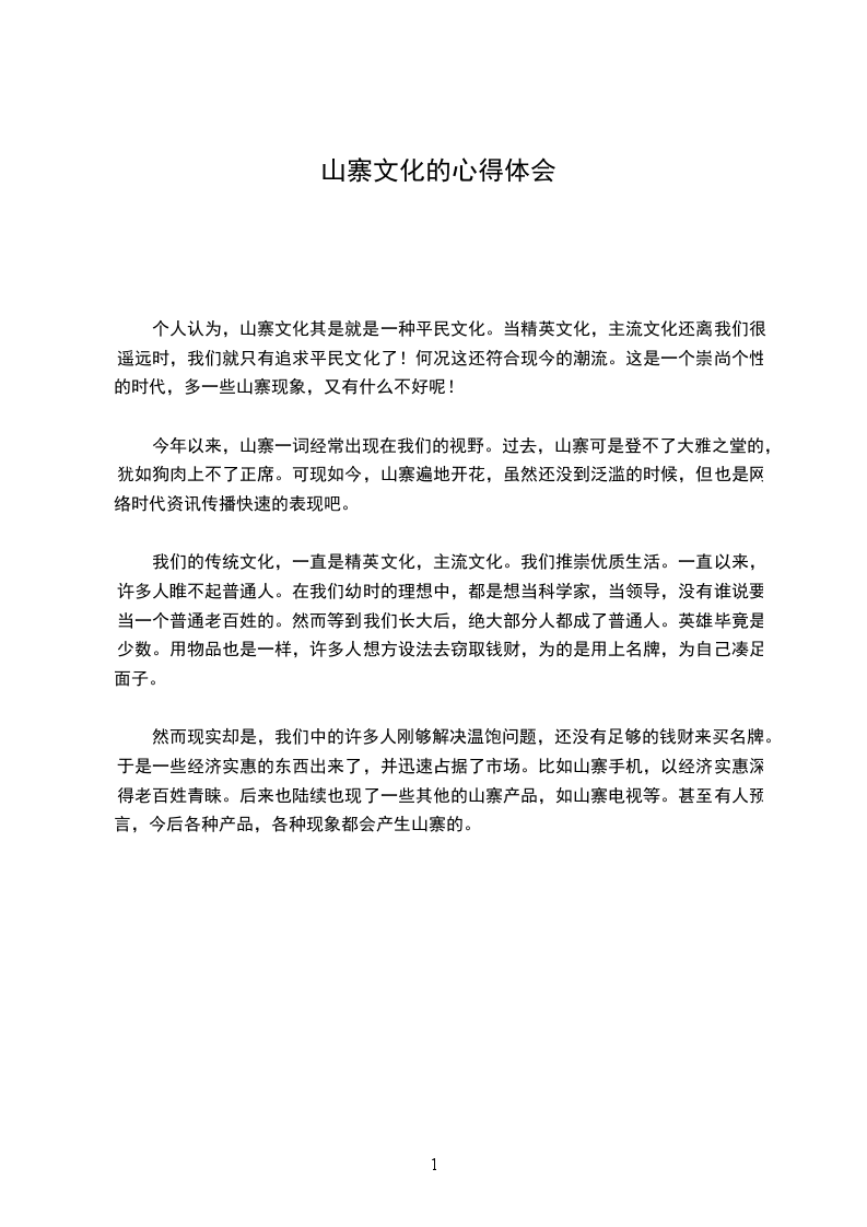 个人认为,山寨文化其是就是一种平民文化。当精英文化,主流文化还离我们很遥远时,我们就只有追求平民文化了!何况这还符合现今的潮流。这是一个崇尚个性的时代,多一些山寨现象,又有什么不好呢!