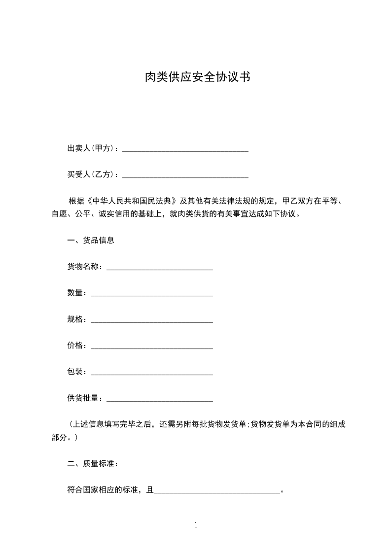根据《中华人民共和国民法典》及其他有关法律法规的规定,甲乙双方在平等、自愿、公平、诚实信用的基础上,就肉类供货的有关事宜达成如下协议。