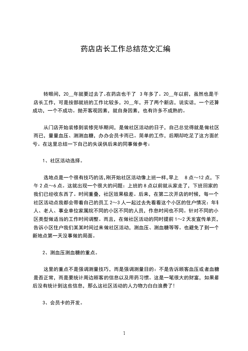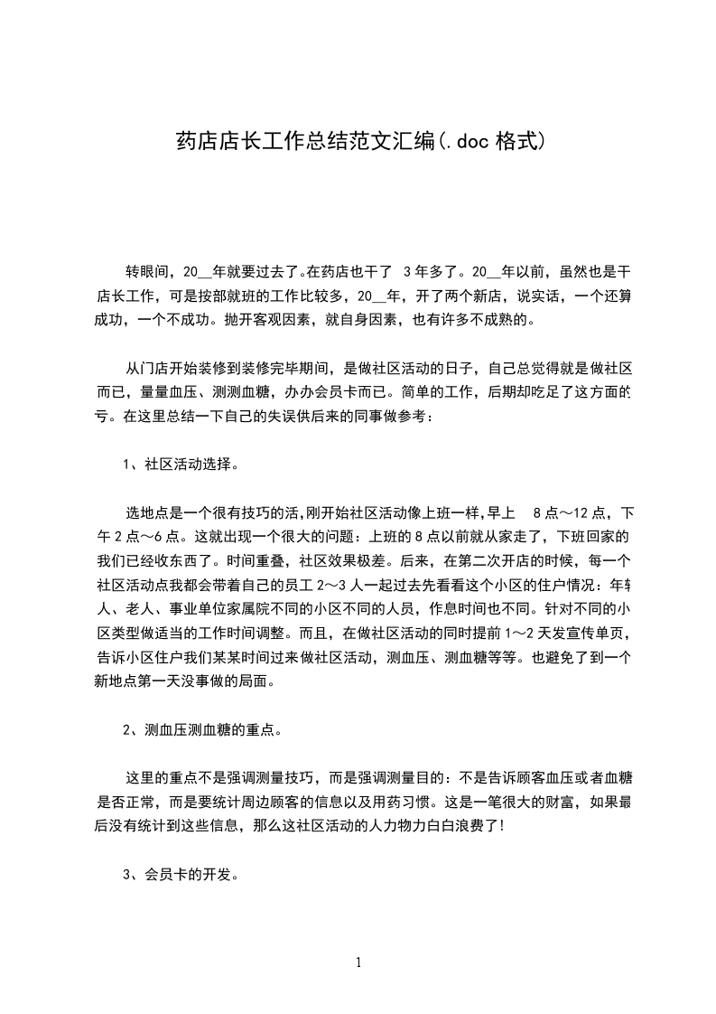 转眼间,20__年就要过去了。在药店也干了3年多了。20__年以前,虽然也是干店长工作,可是按部就班的工作比较多,20__年,开了两个新店,说实话,一个还算成功,一个不成功。抛开客观因素,就自身因素,也有许多不成熟的。
