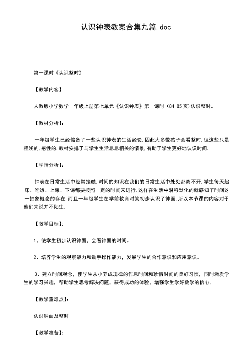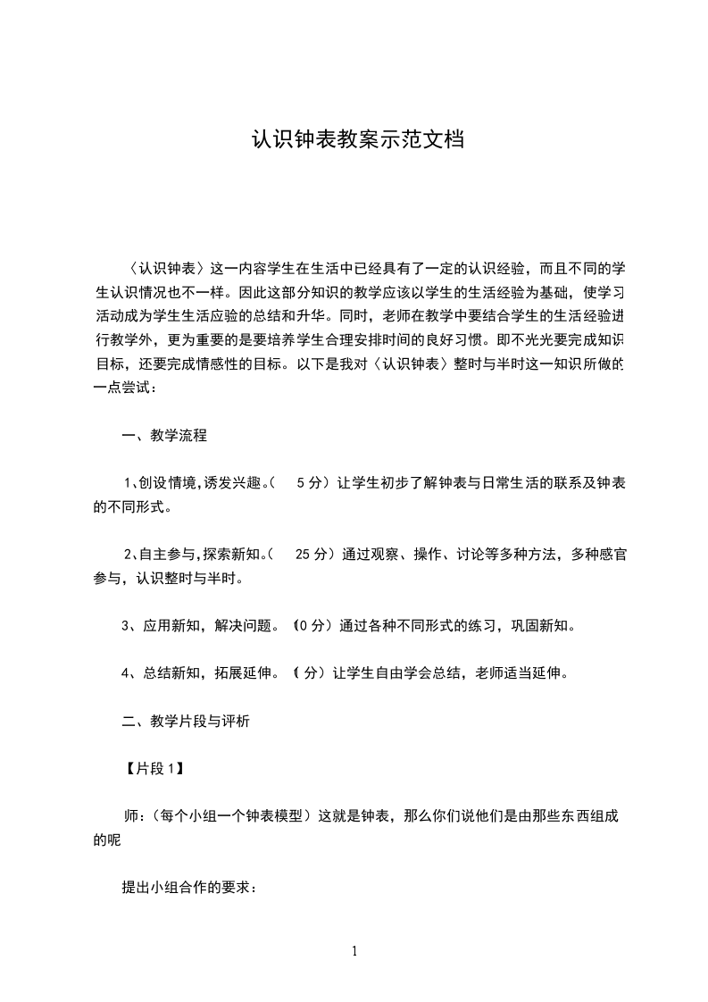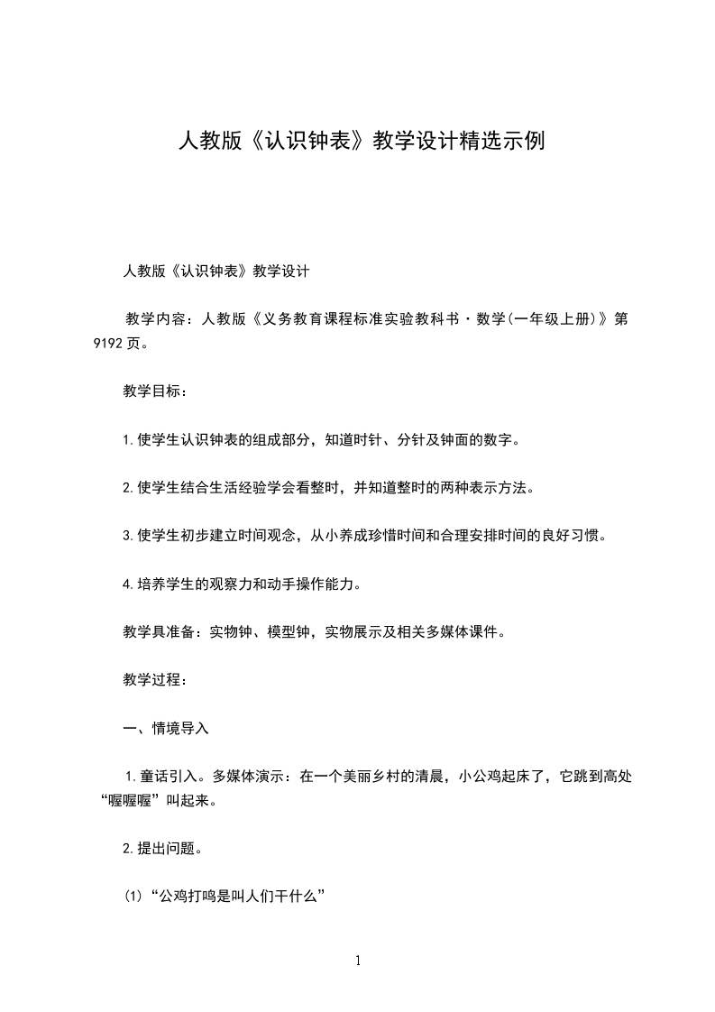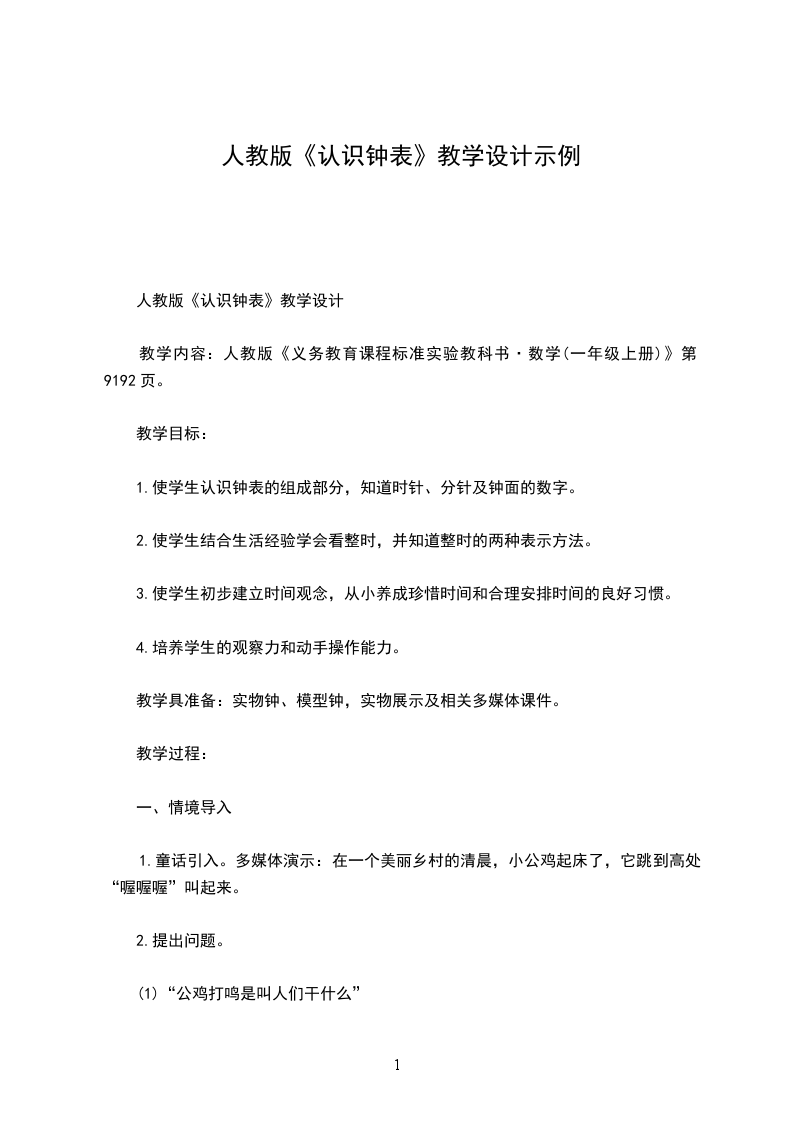 师:你在生活中那些地方见过钟表钟表在我们生活中有什么用今天我们就来认识钟表。揭题:认识钟表。