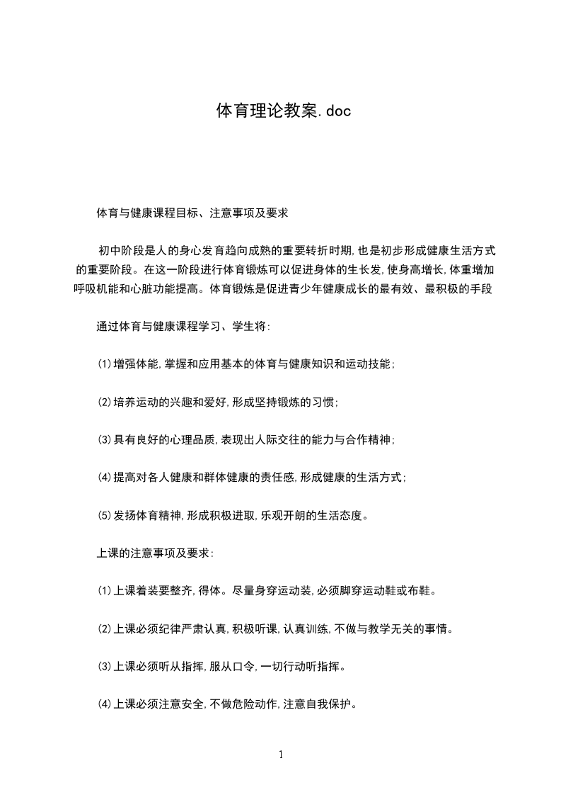 体育与健康课程目标、注意事项及要求
