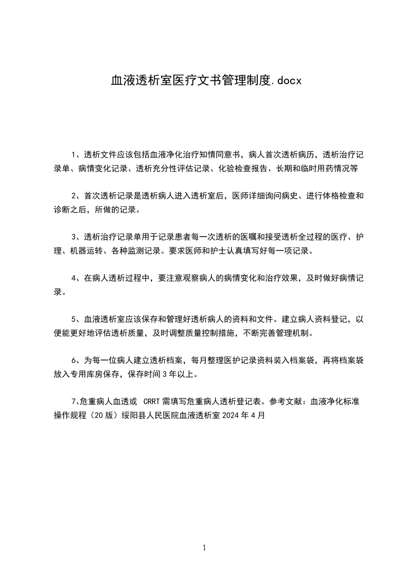 一、我院血液净化室各种相关制度、岗位职责、技术规范、操作规程已经完善;血液透析机及水处理设备符合国家标准,有操作规范,使用者经过培训,已取得上岗证,现可以正常使用;急救设备也已到位
