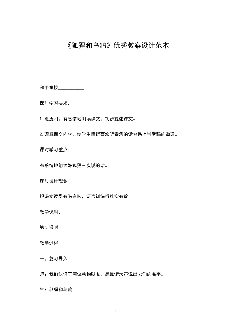 生:亲爱的乌鸦,您的羽毛真漂亮,麻雀比起您来,可就差多了。您的嗓子真好,谁都爱听您唱歌,您就唱几句吧!