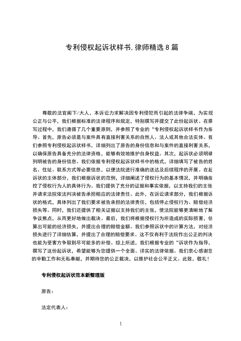 根据《中华人民共和国民事诉讼法》、《中华人民共和国专利法》等有关法律、法规规定,特向贵院提起民事诉讼,请求保护原告的合法权益。