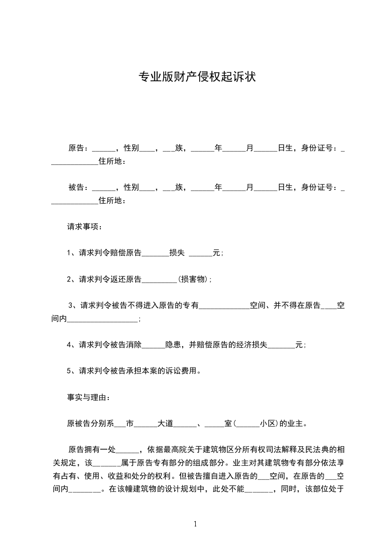 二、判令被告赔偿原告损失__万元人民币;