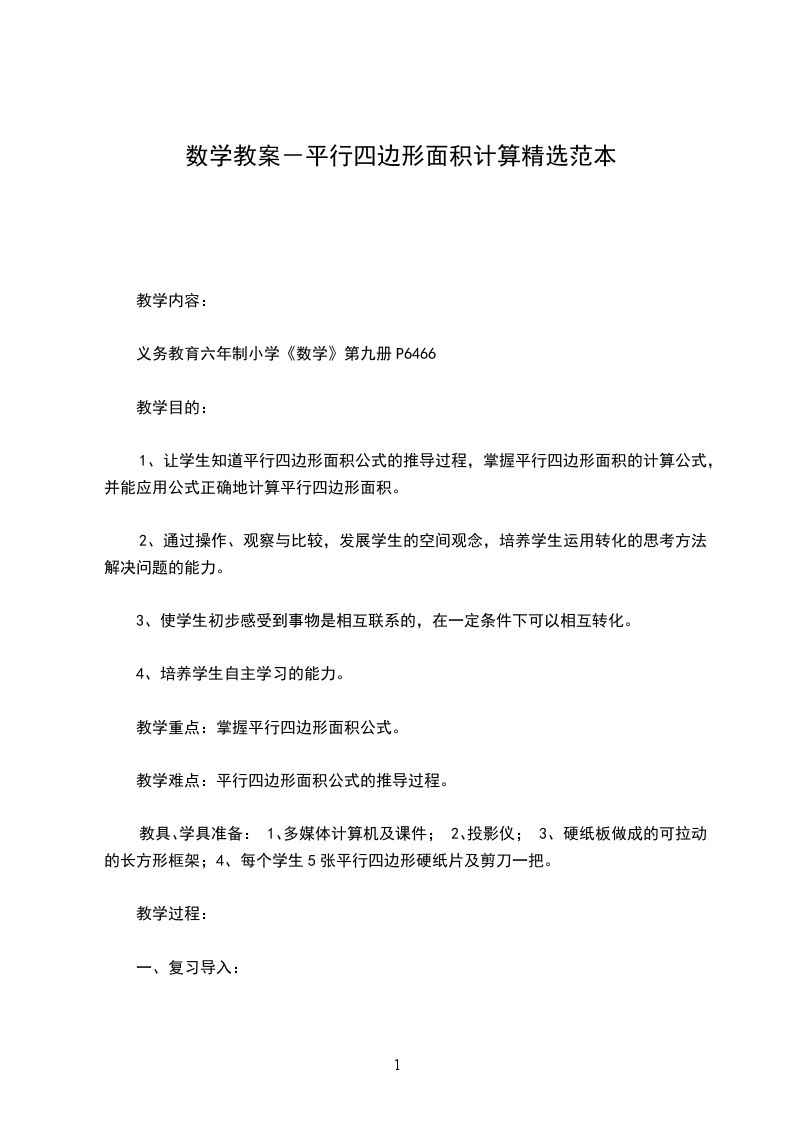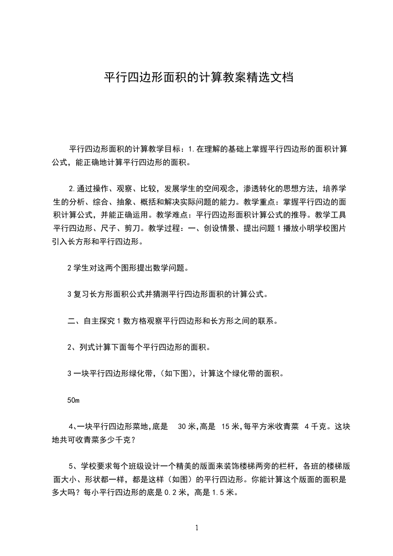 4、解决这个问题最好的办法就是将两个图形的面积都求出来进行比较,长方形的面积我们会求了,平行四边形的面积要怎么求呢这节可我们就一起来学习平行四边形面积的计算。(板书课题:平行四边形面积的计算)