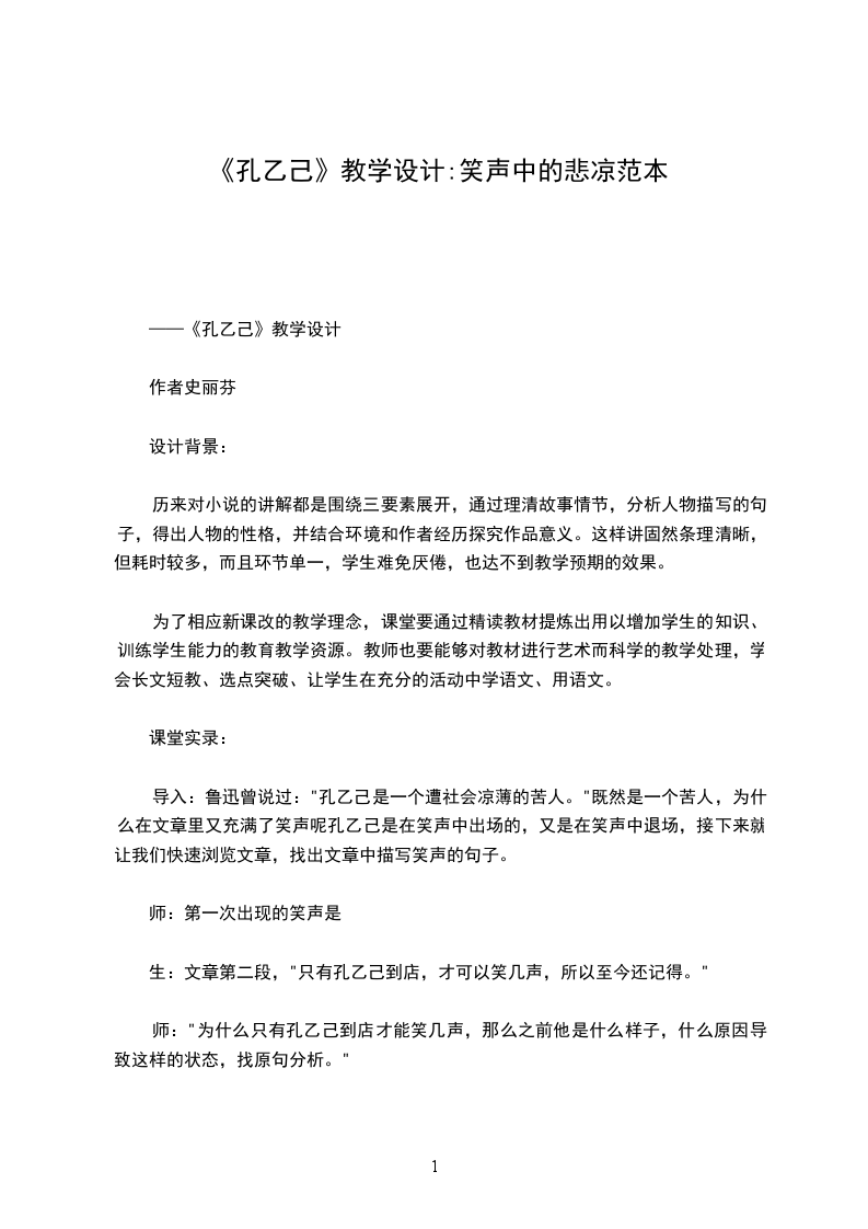 ——《孔乙己》教学设计