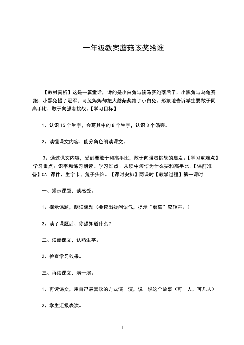 说得真好,为什么兔妈妈偏偏把蘑菇奖给了没有得冠军的小白兔呢下节课,我们再继续学习。