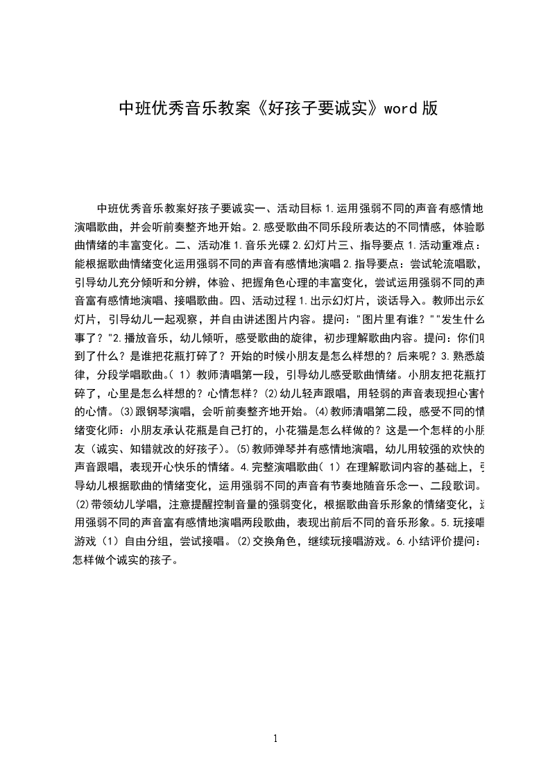 通过学唱歌曲《好孩子要诚实》,教育学生说话要诚实,有错就改。指导学生用自然圆润的声音歌唱。