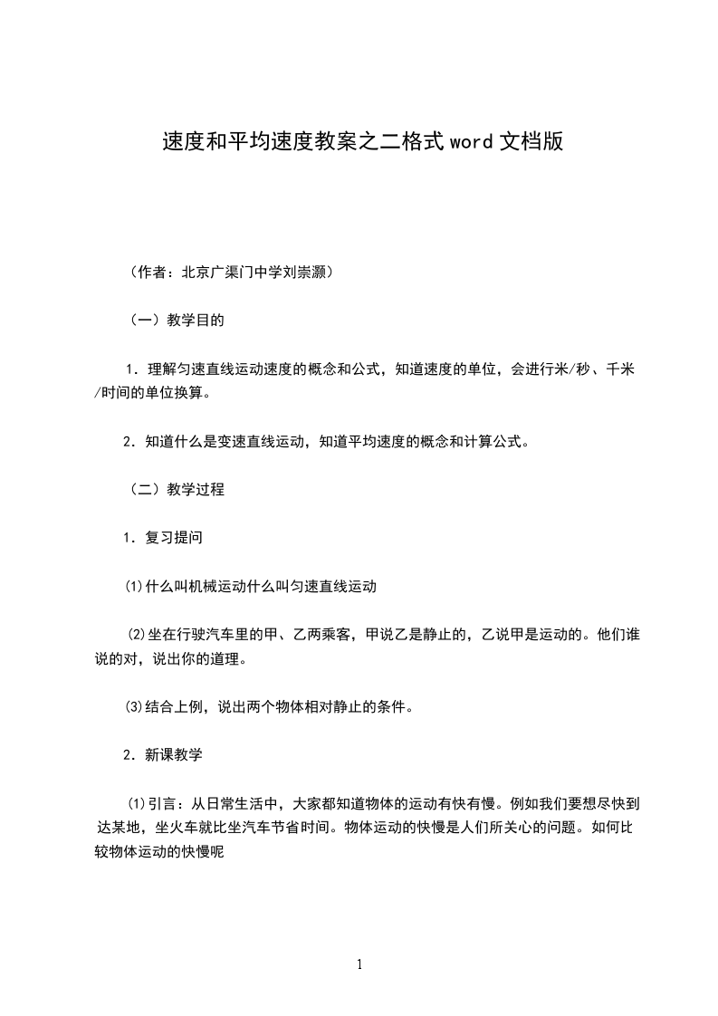 教师指出:从北京开往天津的火车的运动速度是变化的,这种运动叫变速运动。这是常见的一种运动。变速运动比匀速运动复杂,在要求不很精确,粗略研究的情况下,可以用平均速度来描述变速运动的快慢。