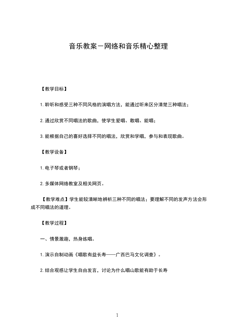 2.通过欣赏不同唱法的歌曲,使学生爱唱、敢唱、能唱;