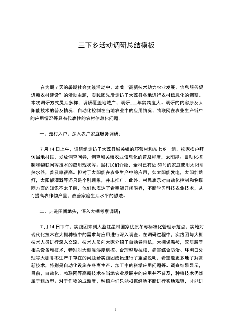 在为期7天的暑期社会实践活动中,本着“高新技术助力农业发展,信息服务促进新农村建设”的活动主题,实践团先后走访了大荔县各地进行农村信息化的调研。本次调研方式灵活多样,调研覆盖地域广,调研___年龄跨度大。调研的内容涉及太阳能技术的普及情况、自动化控制在当地农业中的应用情况、物联网在农业生产链中的应用情况等具有代表性的农村信息化问题。