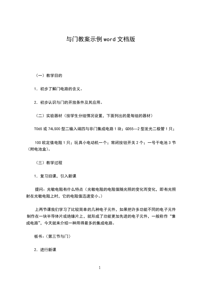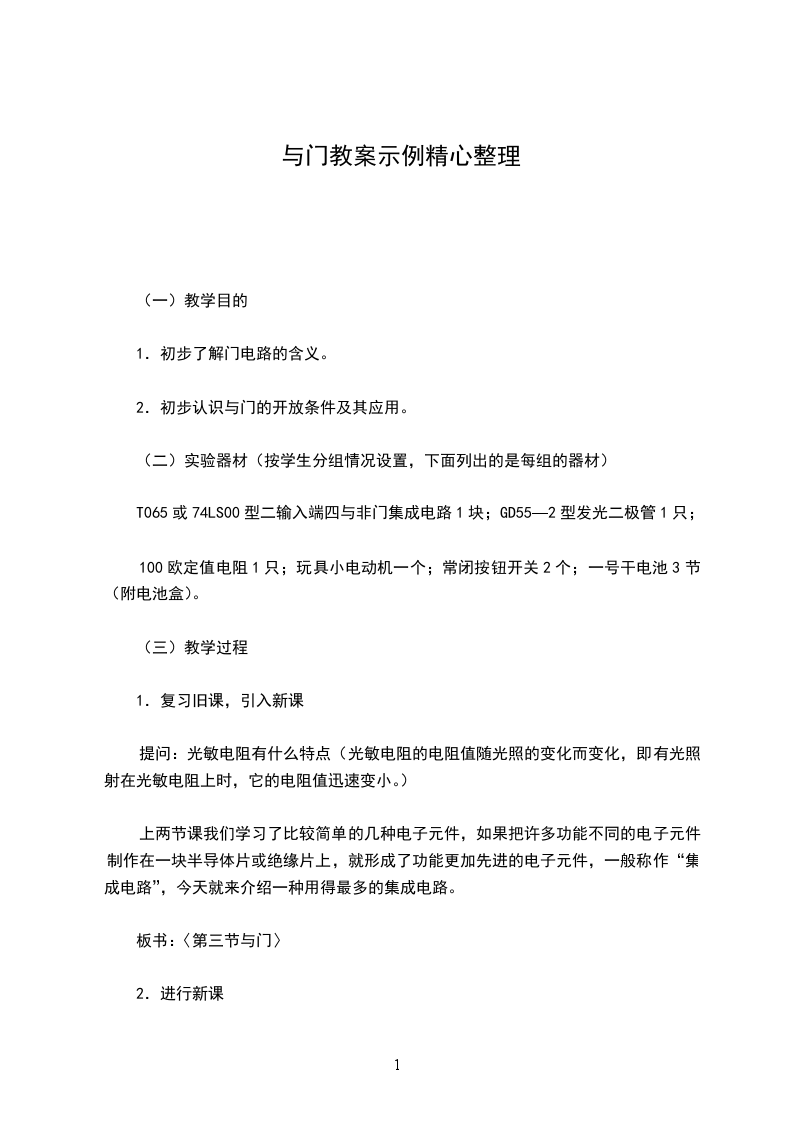 2.初步认识与门的开放条件及其应用。